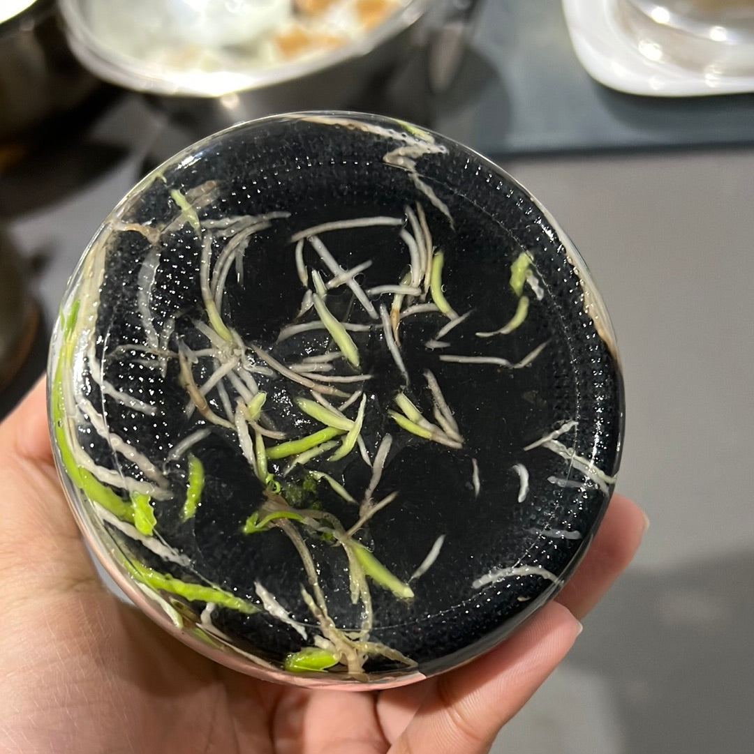 Conical flask containing about 25+ seedlings. Ready to be deflasked.
