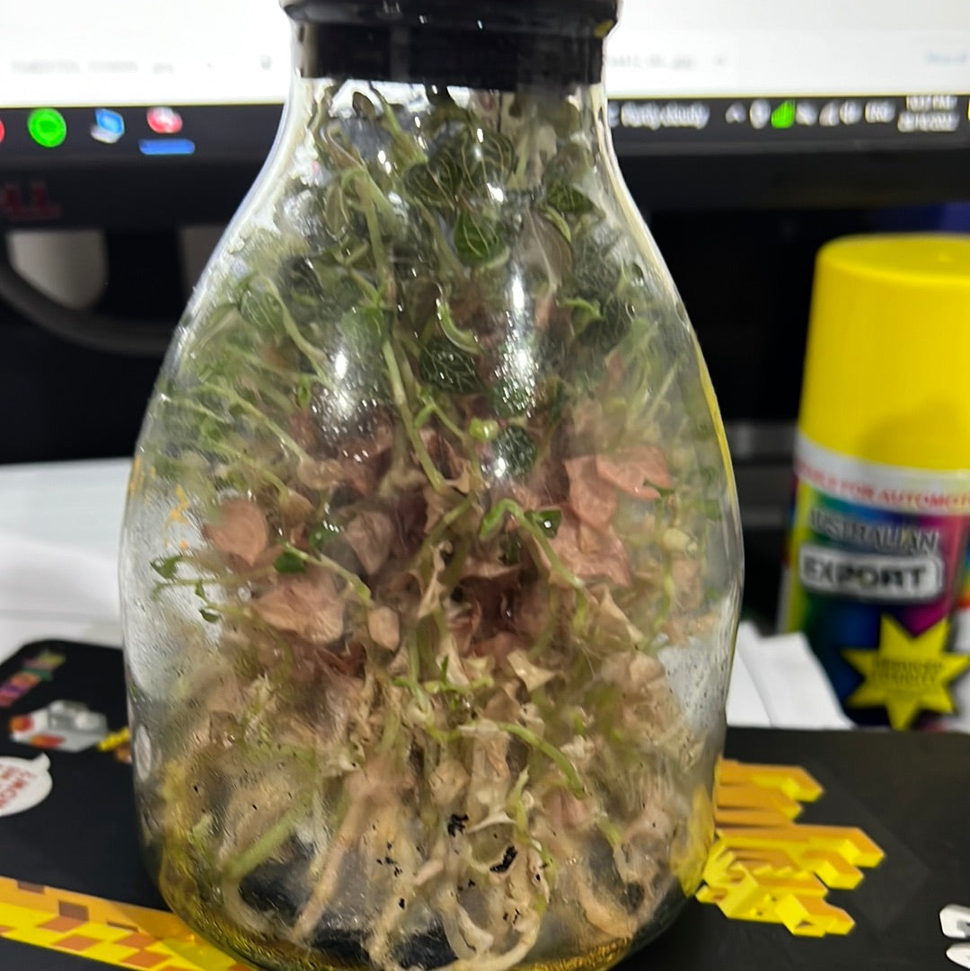 Conical flask containing about 20+ seedlings. Ready to be deflasked.