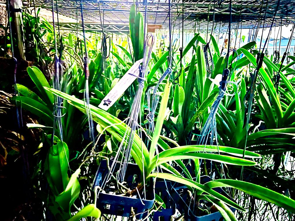These orchids are all epiphytic. They do not like any potting medium. Vanda orchid roots must not be allowed to dry out entirely. Watering of this vandaceous species must be done with care to prevent water from remaining in the crowns (top leafs), a condition that can cause crown rot.