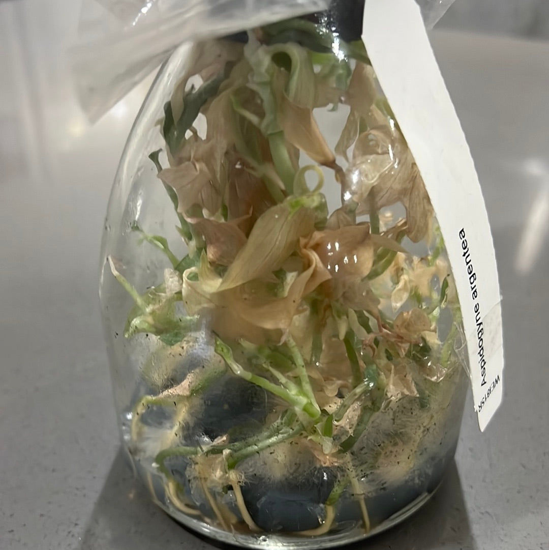 Conical flask containing about 10+ seedlings. Ready to be deflasked.