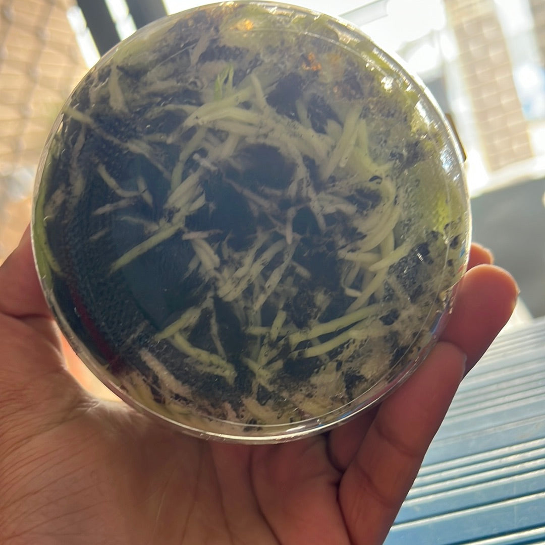 Conical flask containing about 30 seedlings. Ready to be deflasked.