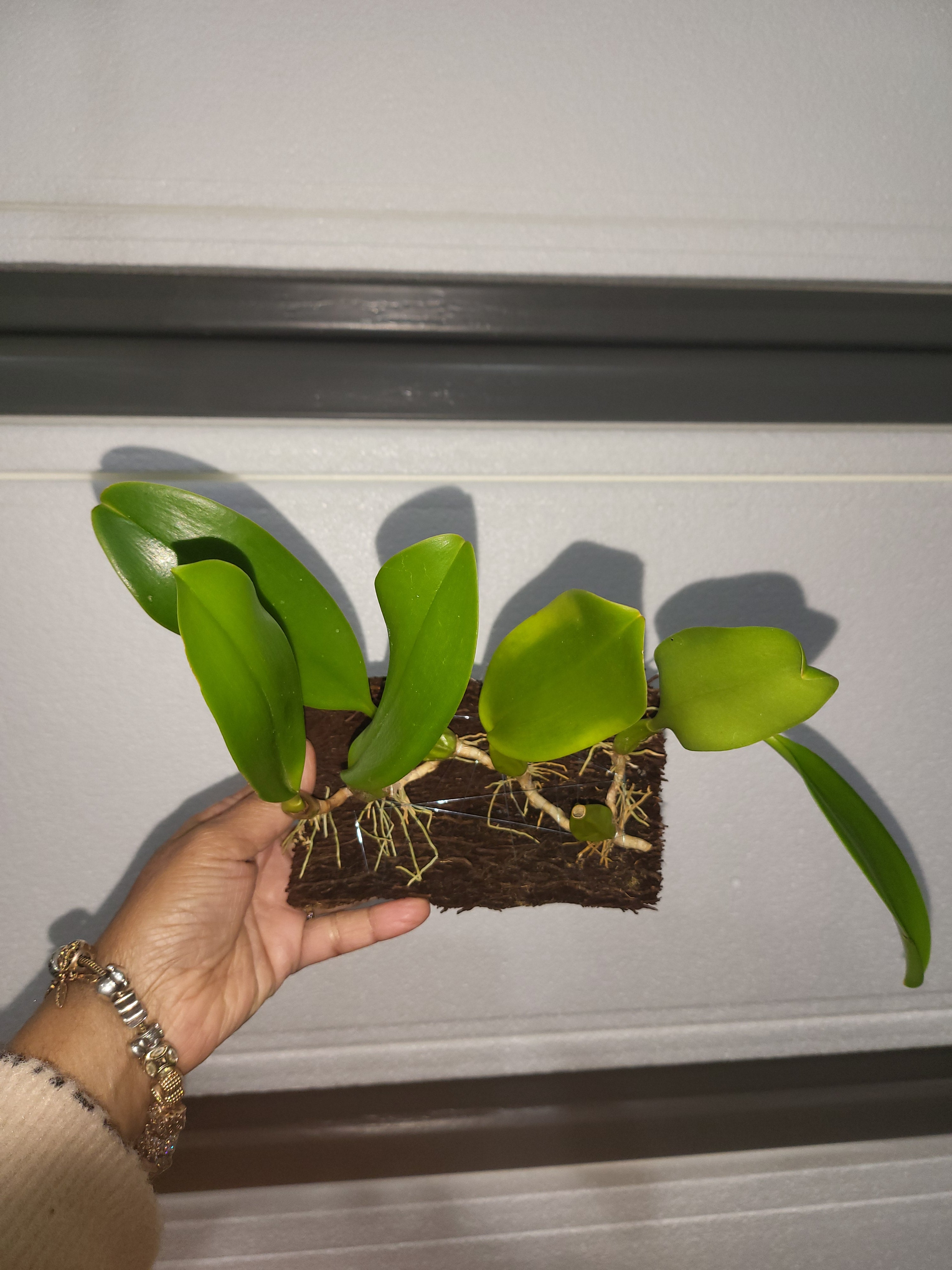 | Repotting | It is encouraged that you repot orchids only when the plant is outgrowing the pot. An orchid needs to be repotted when roots start growing outside of the pot vigorously and the pot swells or cracks. Only use a pot that is one size larger than the previous pot. Do not repot seedlings immediately upon receiving them as this can slow down growth and may cause transplant shock. When repotting, choose a pot with drainage holes so that water does not pool and cause root rot. |