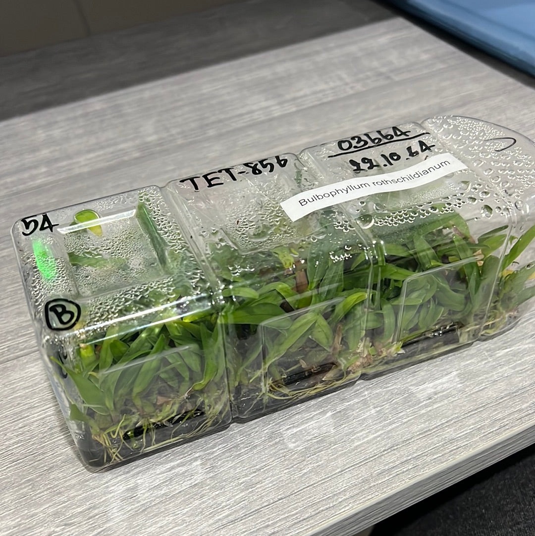 A whiskey-bottle flask containing about 40+ seedlings. Ready to be deflasked.