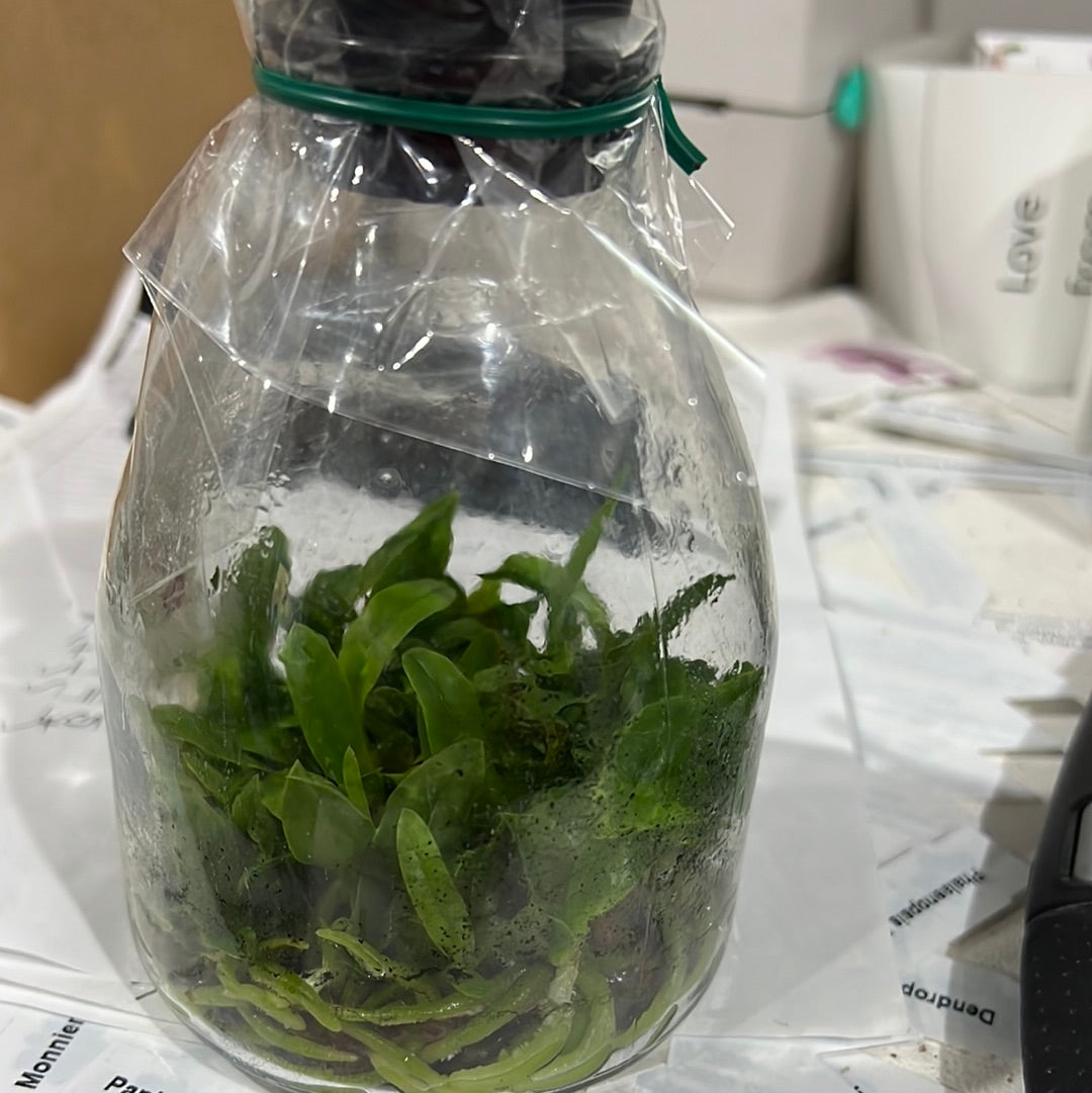 Conical flask containing about 20+ seedlings. Ready to be deflasked.