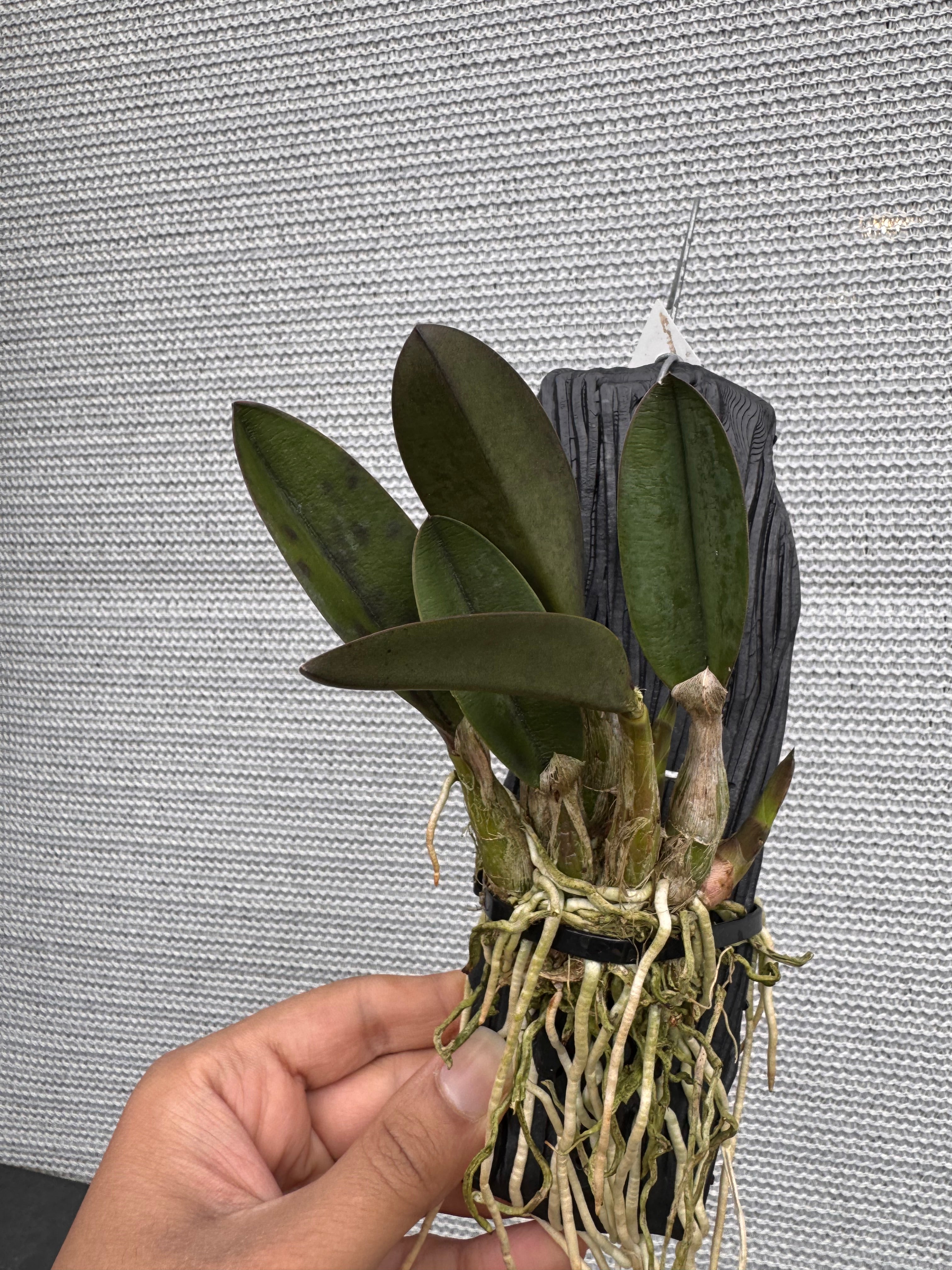 | Repotting | It is encouraged that you repot orchids only when the plant is outgrowing the pot. An orchid needs to be repotted when roots start growing outside of the pot vigorously and the pot swells or cracks. Only use a pot that is one size larger than the previous pot. Do not repot seedlings immediately upon receiving them as this can slow down growth and may cause transplant shock. When repotting, choose a pot with drainage holes so that water does not pool and cause root rot. |