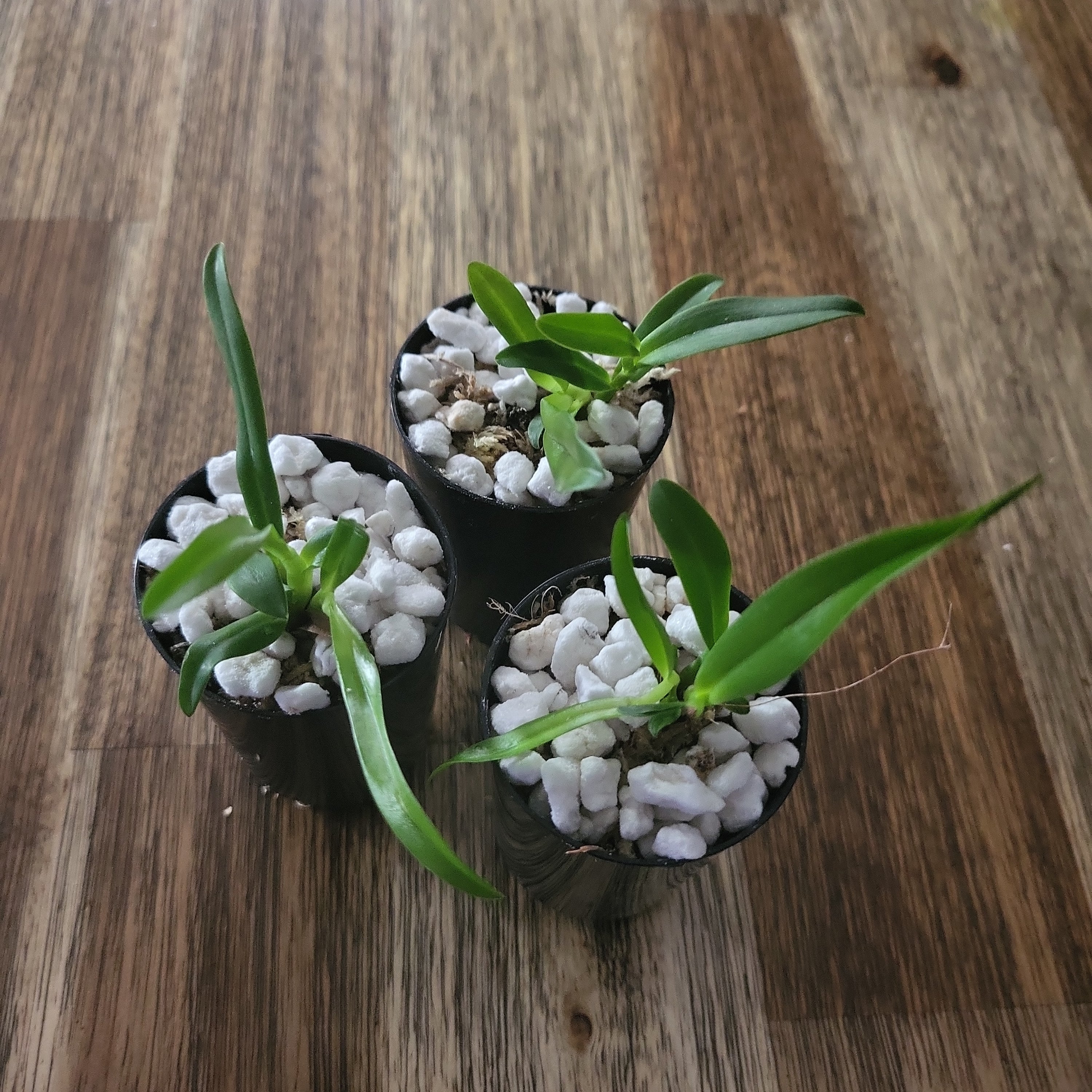 | Repotting | It is encouraged that you repot orchids only when the plant is outgrowing the pot. An orchid needs to be repotted when roots start growing outside of the pot vigorously and the pot swells or cracks. Only use a pot that is one size larger than the previous pot. Do not repot seedlings immediately upon receiving them as this can slow down growth and may cause transplant shock. When repotting, choose a pot with drainage holes so that water does not pool and cause root rot. |