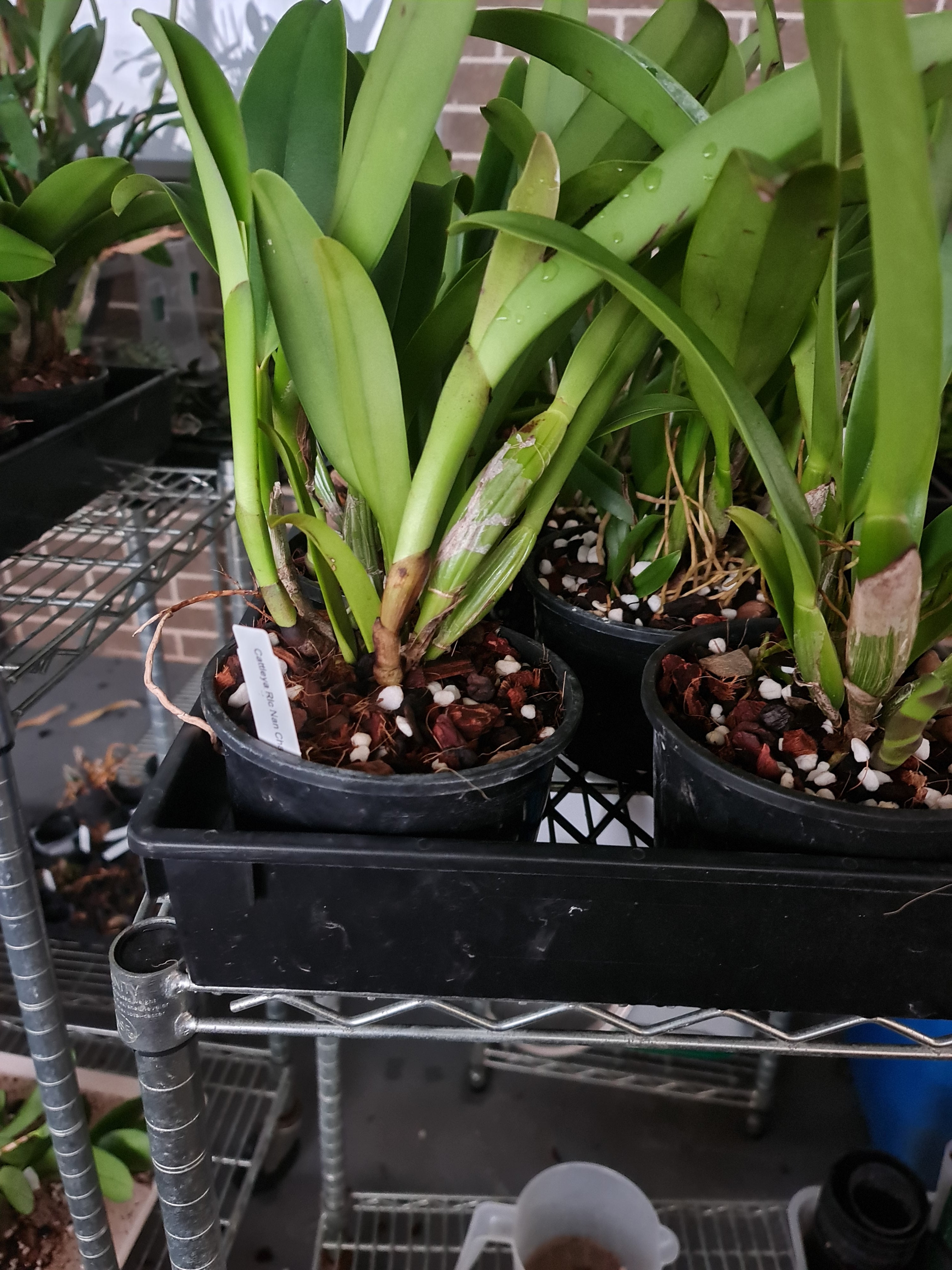 | Repotting | It is encouraged that you repot orchids only when the plant is outgrowing the pot. An orchid needs to be repotted when roots start growing outside of the pot vigorously and the pot swells or cracks. Only use a pot that is one size larger than the previous pot. Do not repot seedlings immediately upon receiving them as this can slow down growth and may cause transplant shock. When repotting, choose a pot with drainage holes so that water does not pool and cause root rot. |