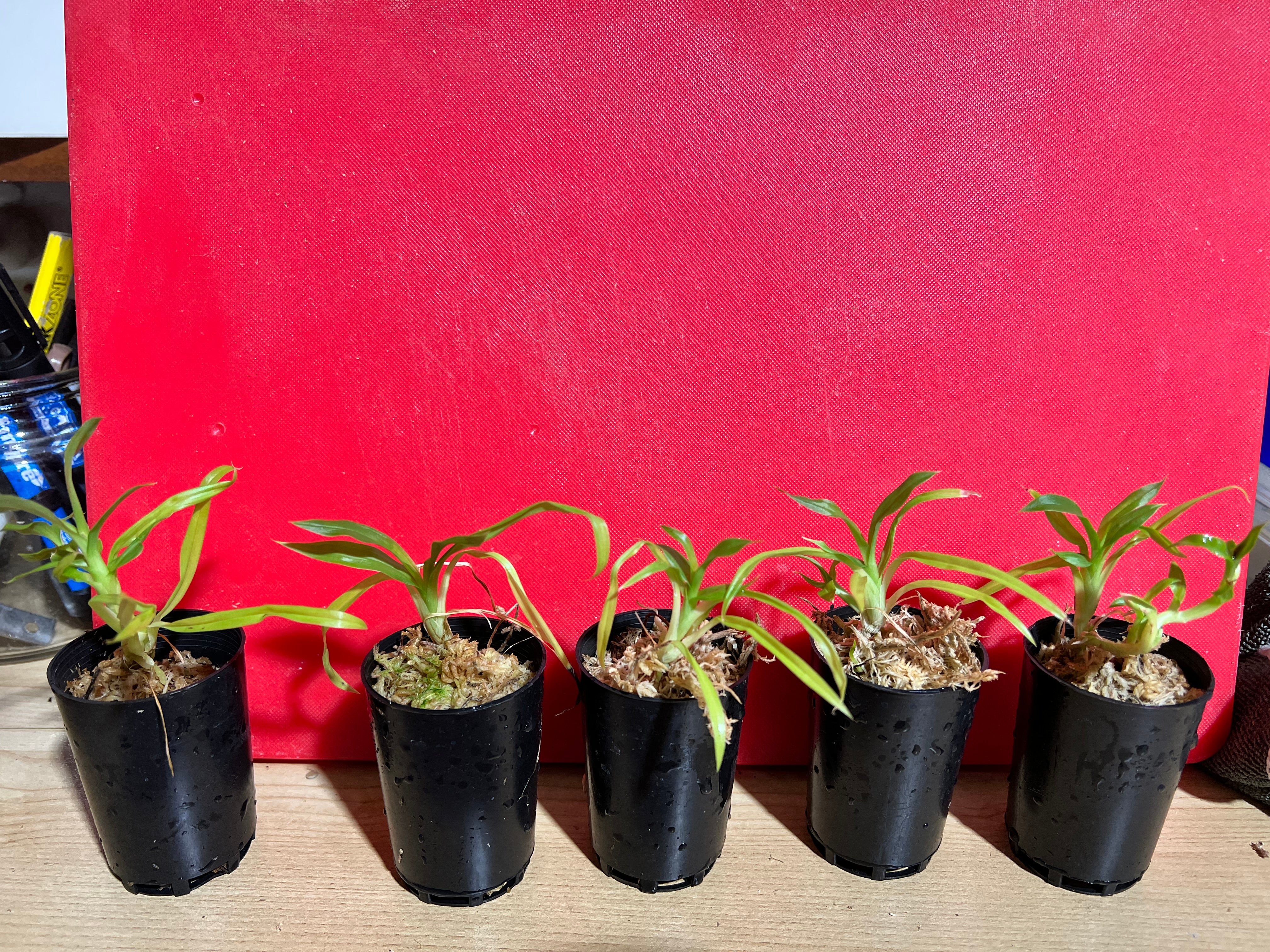 | Repotting | It is encouraged that you repot orchids only when the plant is outgrowing the pot. An orchid needs to be repotted when roots start growing outside of the pot vigorously and the pot swells or cracks. Only use a pot that is one size larger than the previous pot. Do not repot seedlings immediately upon receiving them as this can slow down growth and may cause transplant shock. When repotting, choose a pot with drainage holes so that water does not pool and cause root rot. |