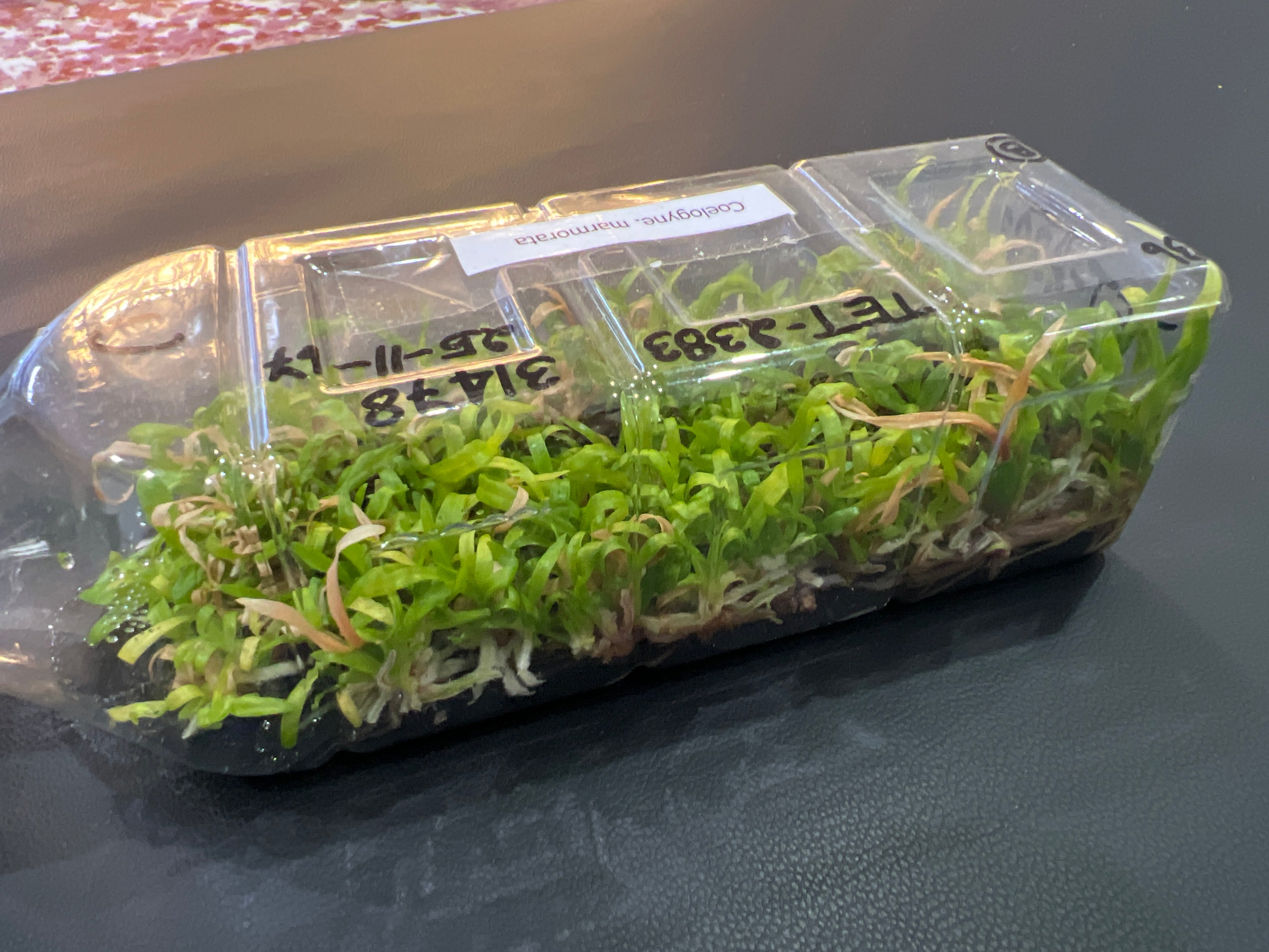 | Repotting | It is encouraged that you repot orchids only when the plant is outgrowing the pot. An orchid needs to be repotted when roots start growing outside of the pot vigorously and the pot swells or cracks. Only use a pot that is one size larger than the previous pot. Do not repot seedlings immediately upon receiving them as this can slow down growth and may cause transplant shock. When repotting, choose a pot with drainage holes so that water does not pool and cause root rot. |