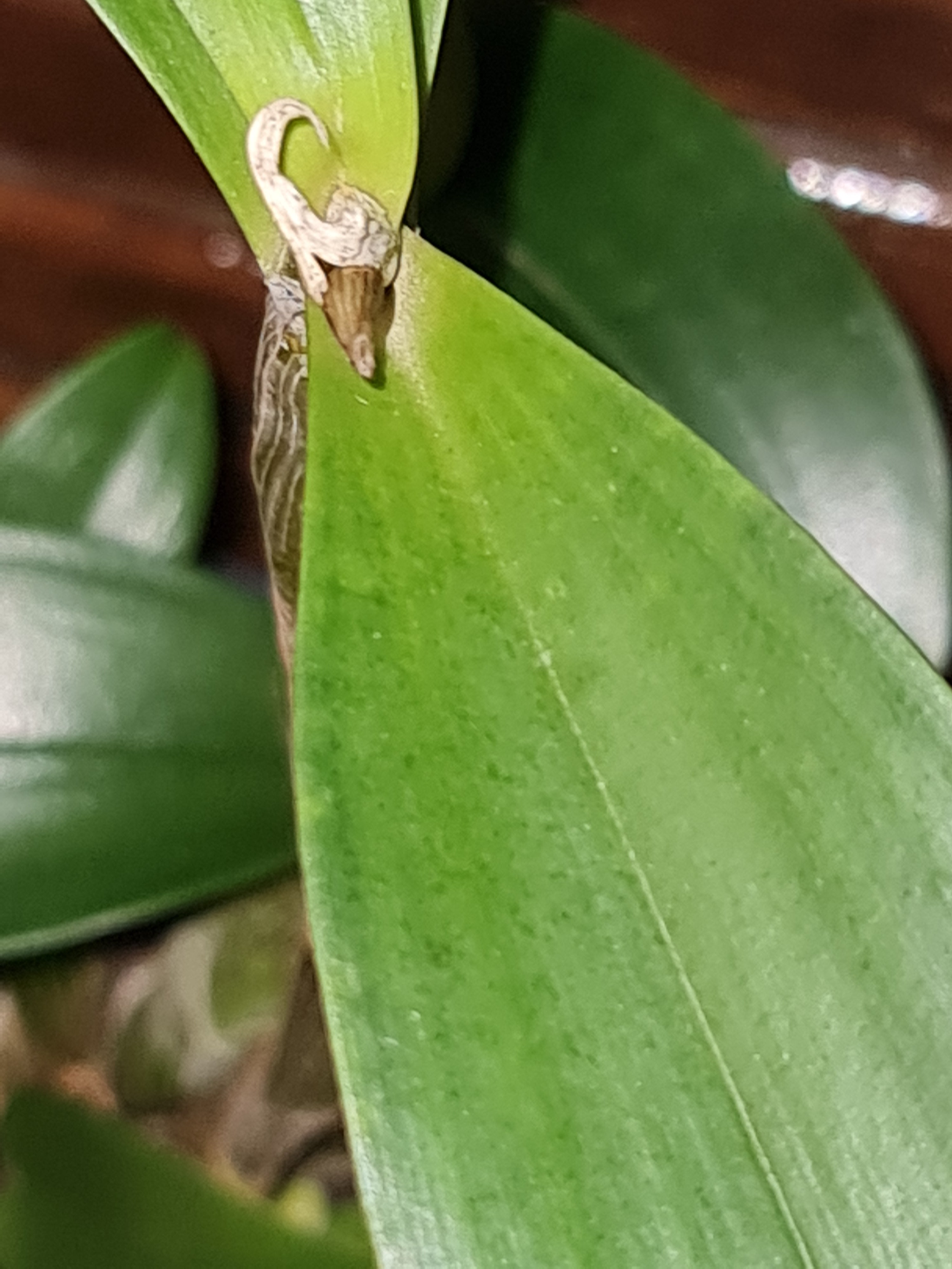 On offer the orchid is ready to flower very soon as it already start forming the flower spike.