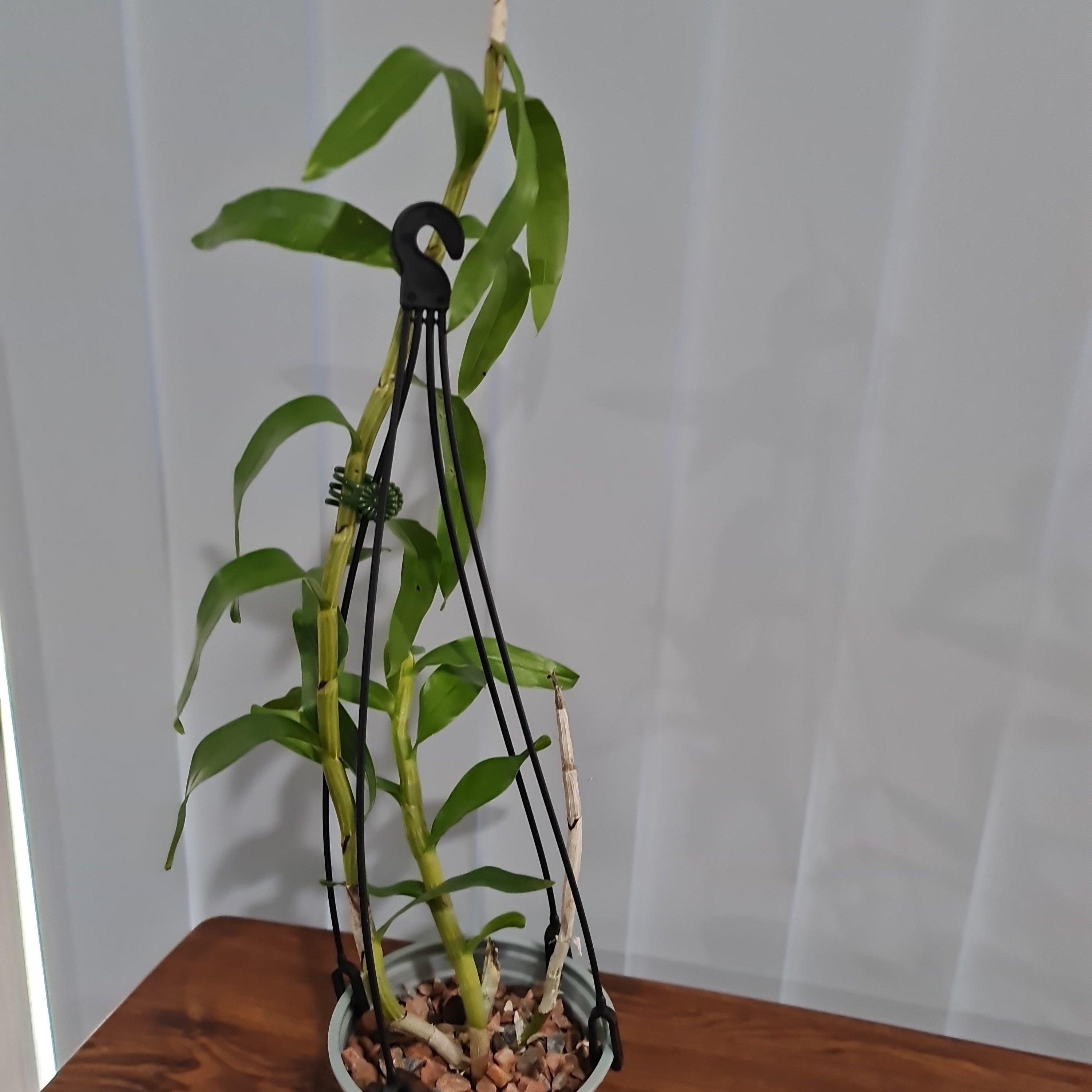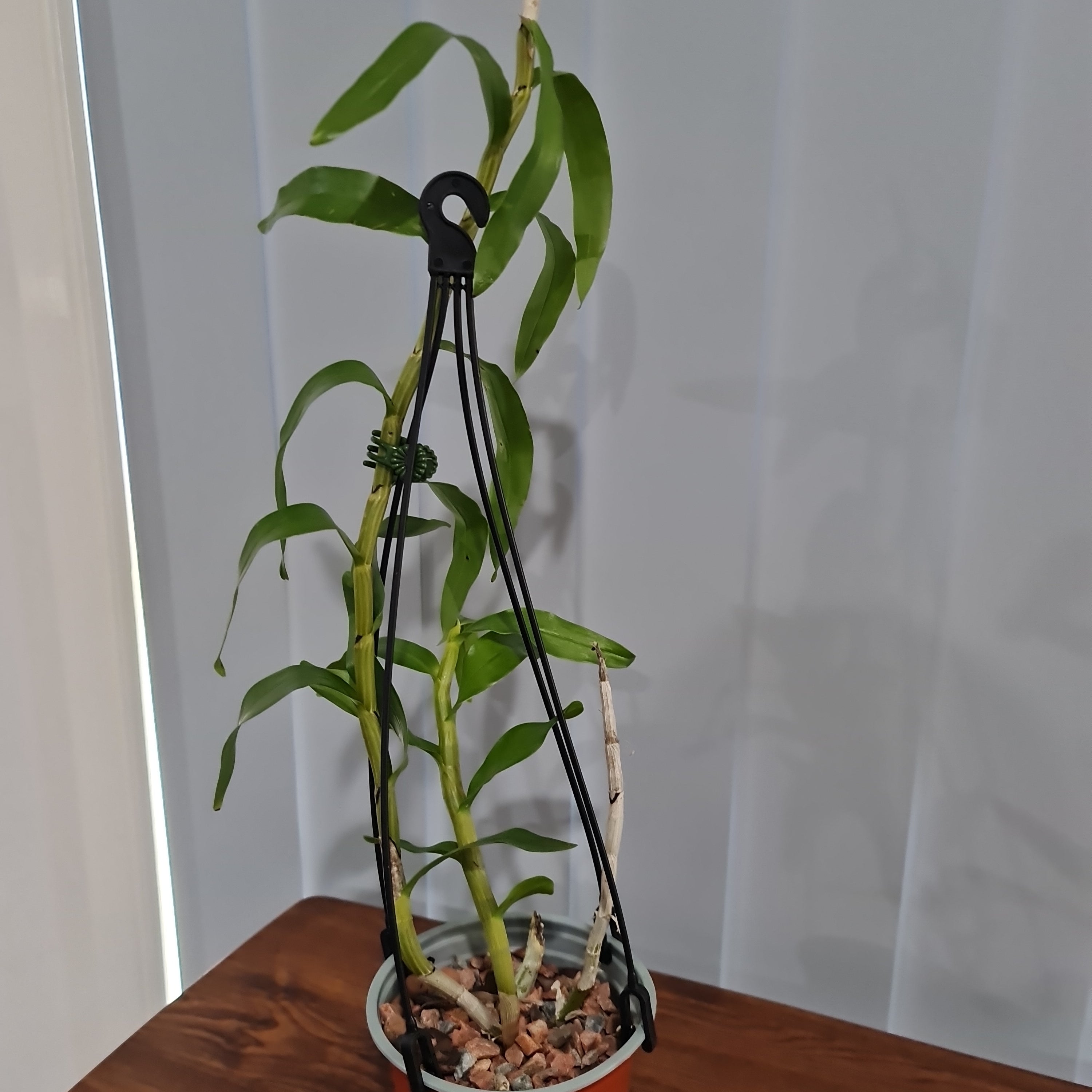 On offer the orchid is not far from flowering size. this will produce white with yellow lipped fragrant fflowers, not always available.