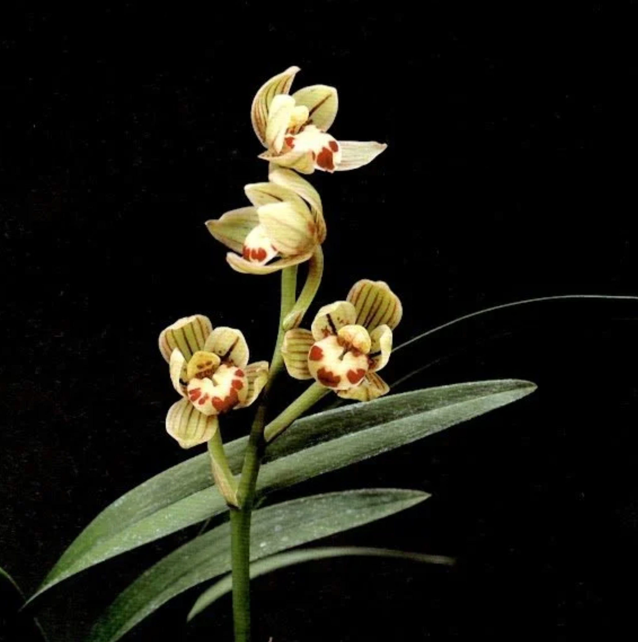 Cymbidium ensifolium Jin He 金荷, also known as four season orchid 四季兰 is a terrestrial orchid which produces fragrant flowers.