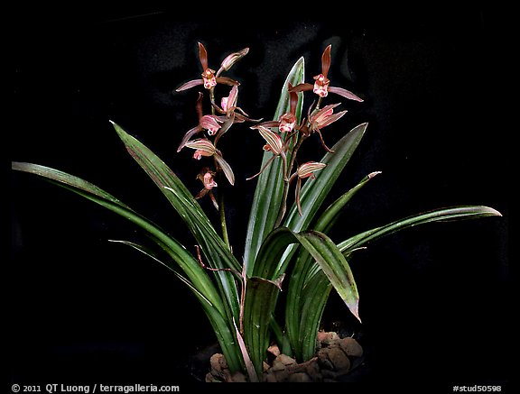 Cymbidium sinense is a wonderful species native to China and Northern Vietnam . It produces dark red flowers that are very sweet in fragrance. This plant is also referred to in China as the 'New Year's Orchid' as it generally flowers during the Chinese New Year in February.