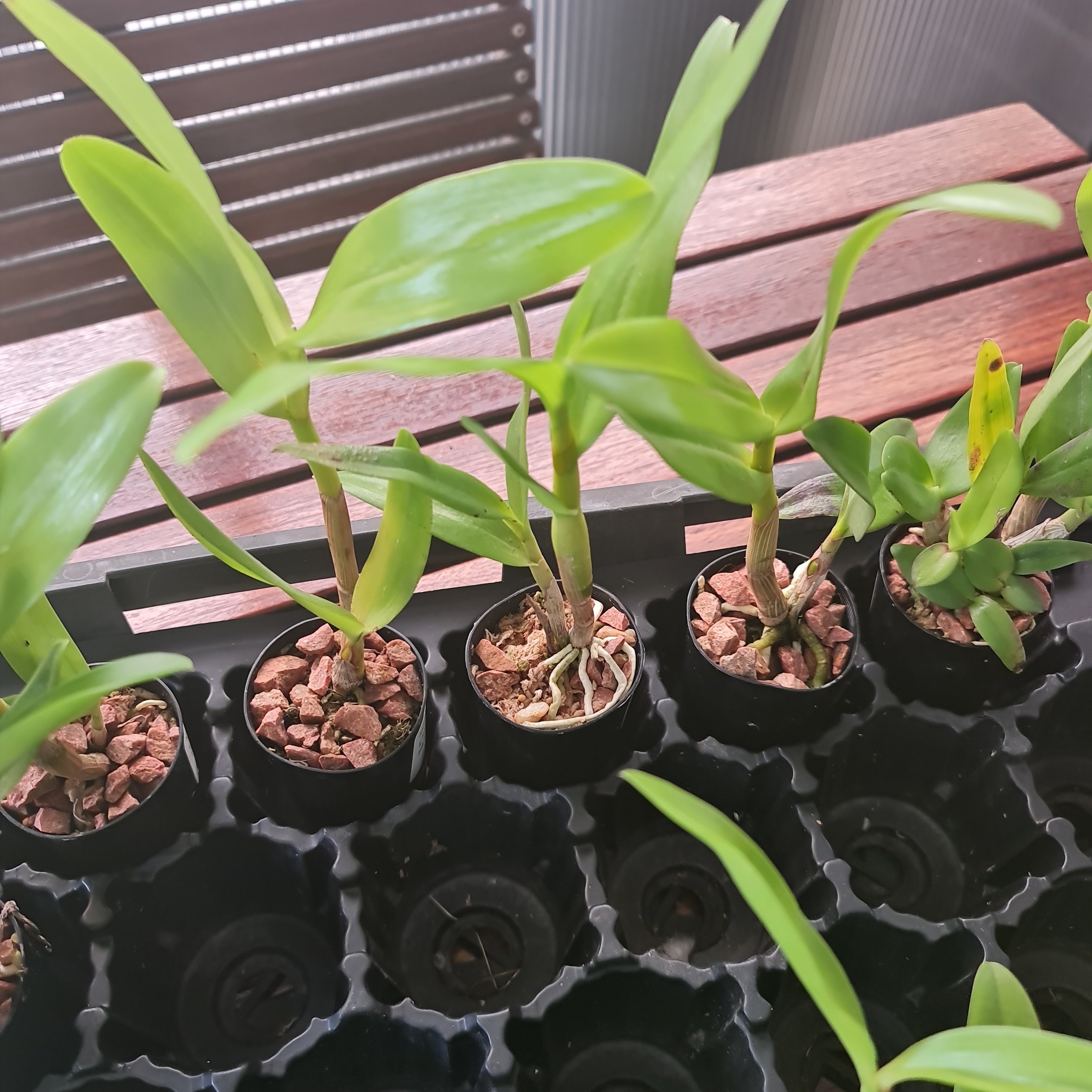 | Repotting | It is encouraged that you repot orchids only when the plant is outgrowing the pot. An orchid needs to be repotted when roots start growing outside of the pot vigorously and the pot swells or cracks. Only use a pot that is one size larger than the previous pot. Do not repot seedlings immediately upon receiving them as this can slow down growth and may cause transplant shock. When repotting, choose a pot with drainage holes so that water does not pool and cause root rot. |
