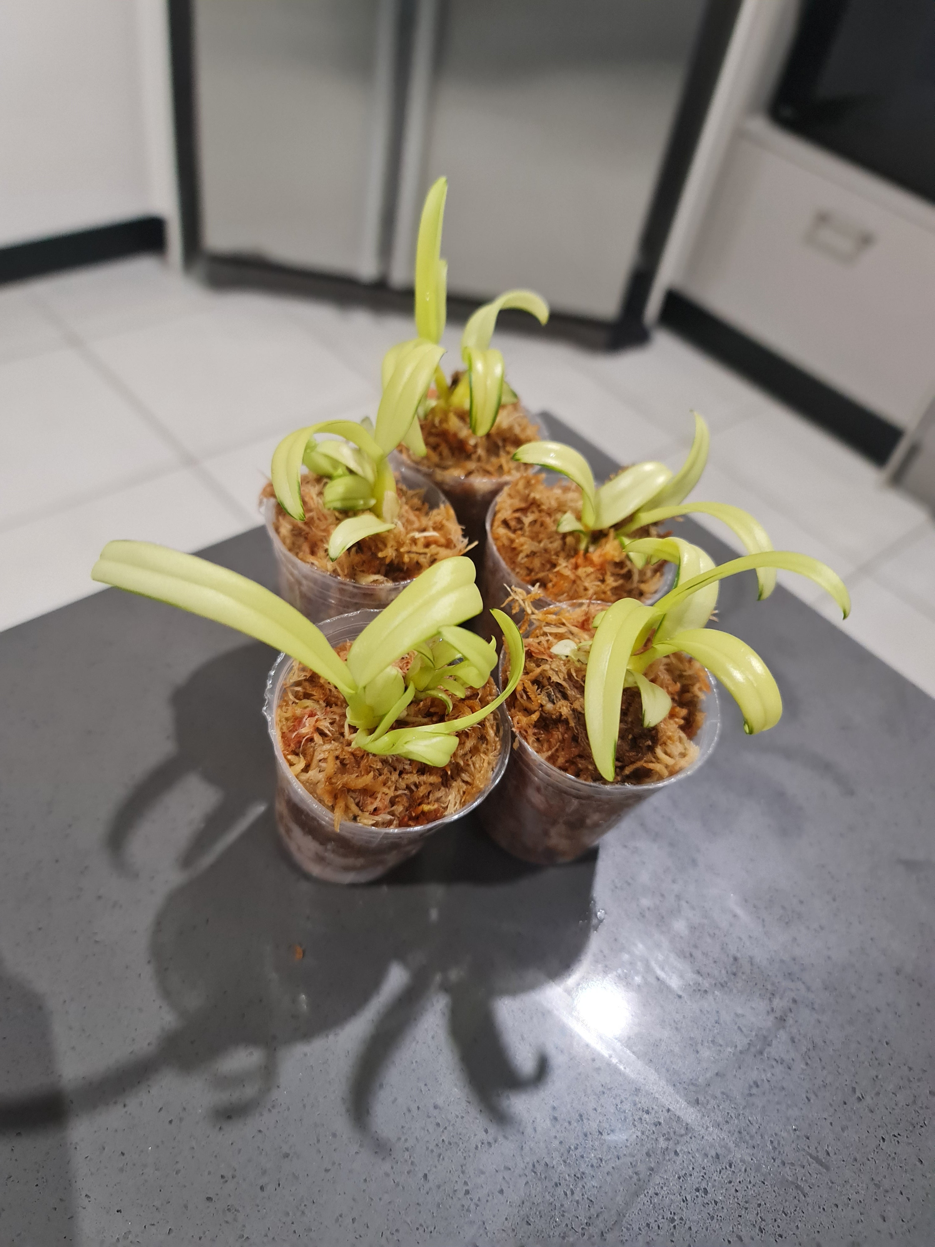 On offer is a beautiful orchid seedling (growing in a 50mm tube) of a Dendrobium hybrid which has stunning heavily variegated leaves. The photos of the flower is provided for your reference but the leaves are more beautiful than its flowers. Each plant may vary in shape and size Onas each plant is unique. We do not ship to WA, TAS and NT due to biosecurity restrictions.