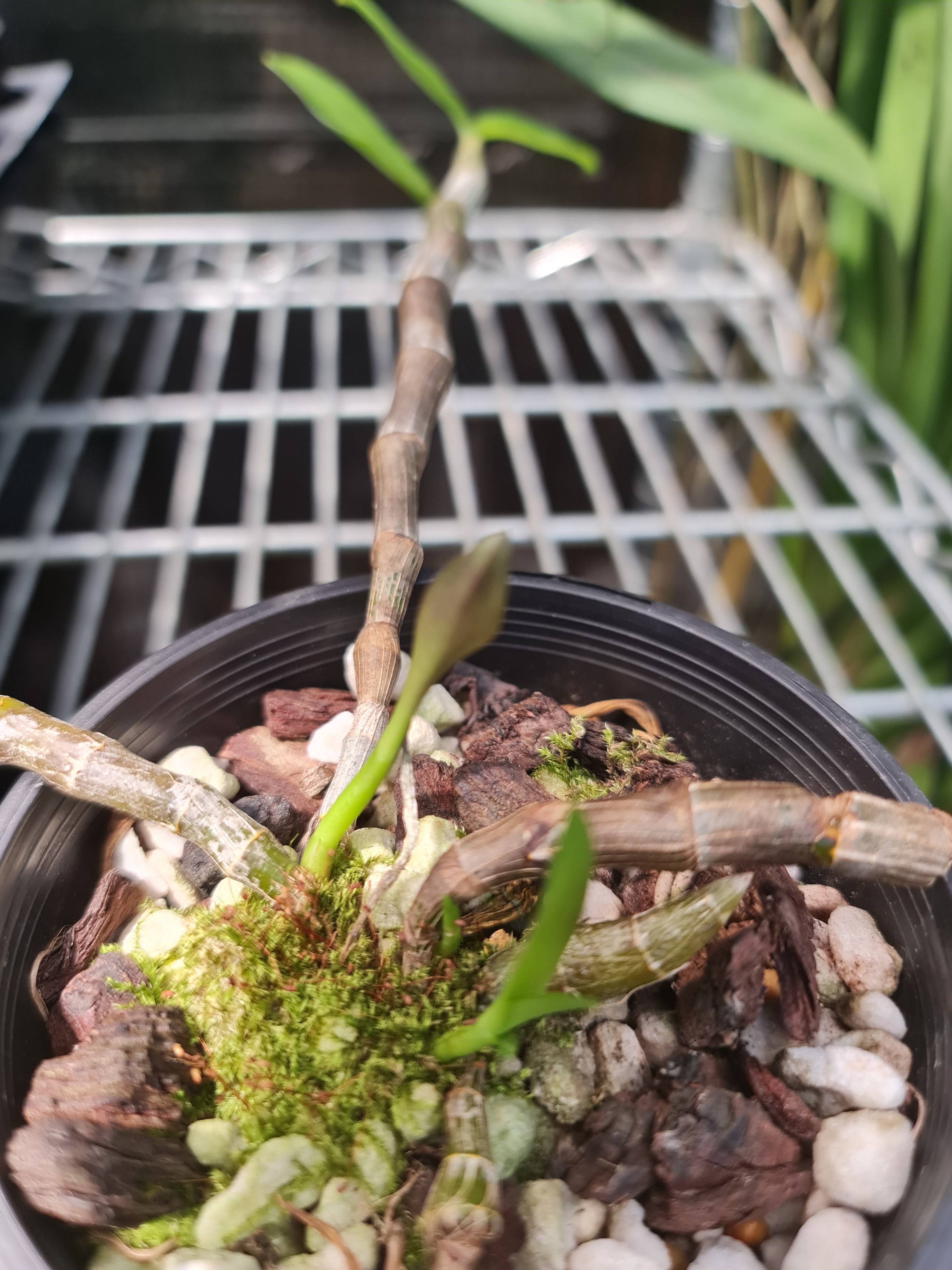 | Repotting | It is encouraged that you repot orchids only when the plant is outgrowing the pot. An orchid needs to be repotted when roots start growing outside of the pot vigorously and the pot swells or cracks. Only use a pot that is one size larger than the previous pot. Do not repot seedlings immediately upon receiving them as this can slow down growth and may cause transplant shock. When repotting, choose a pot with drainage holes so that water does not pool and cause root rot. |