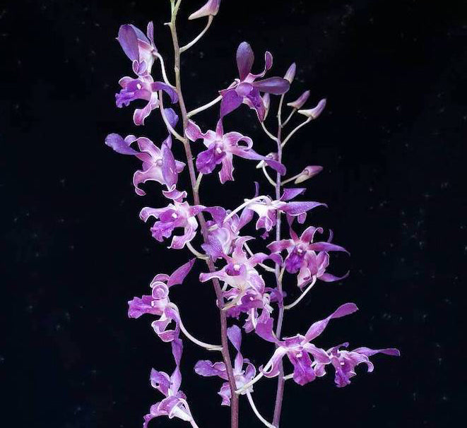 Dendrobium Blue Spin is a hybrid, produces blue with white-colored curly flowers with an amazing texture. It has a blue-colored lip, which attracts everyone with a single spark. Plants for sale are seedlings in 50mm tubes.