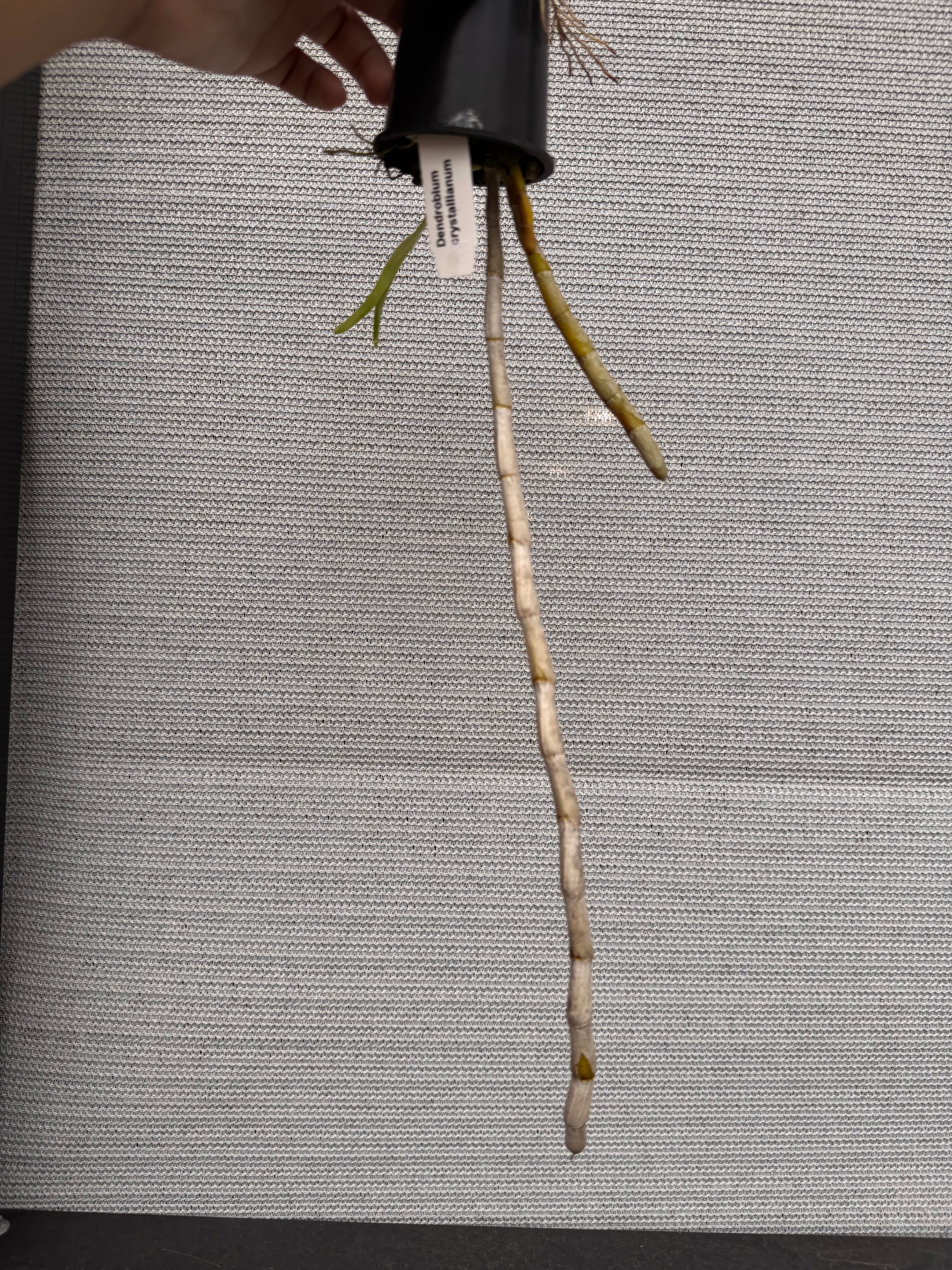 | Repotting | It is encouraged that you repot orchids only when the plant is outgrowing the pot. An orchid needs to be repotted when roots start growing outside of the pot vigorously and the pot swells or cracks. Only use a pot that is one size larger than the previous pot. Do not repot seedlings immediately upon receiving them as this can slow down growth and may cause transplant shock. When repotting, choose a pot with drainage holes so that water does not pool and cause root rot. |
