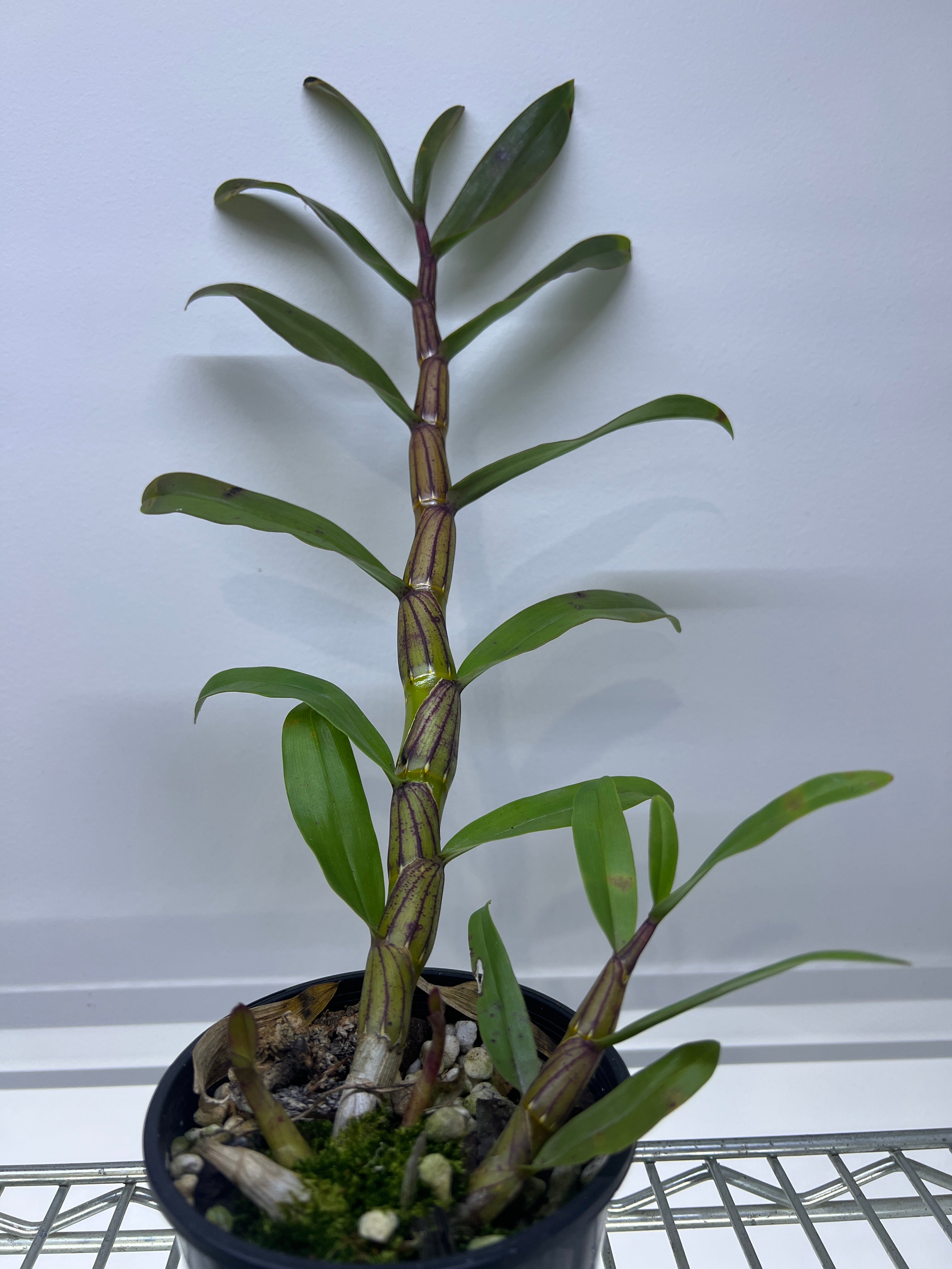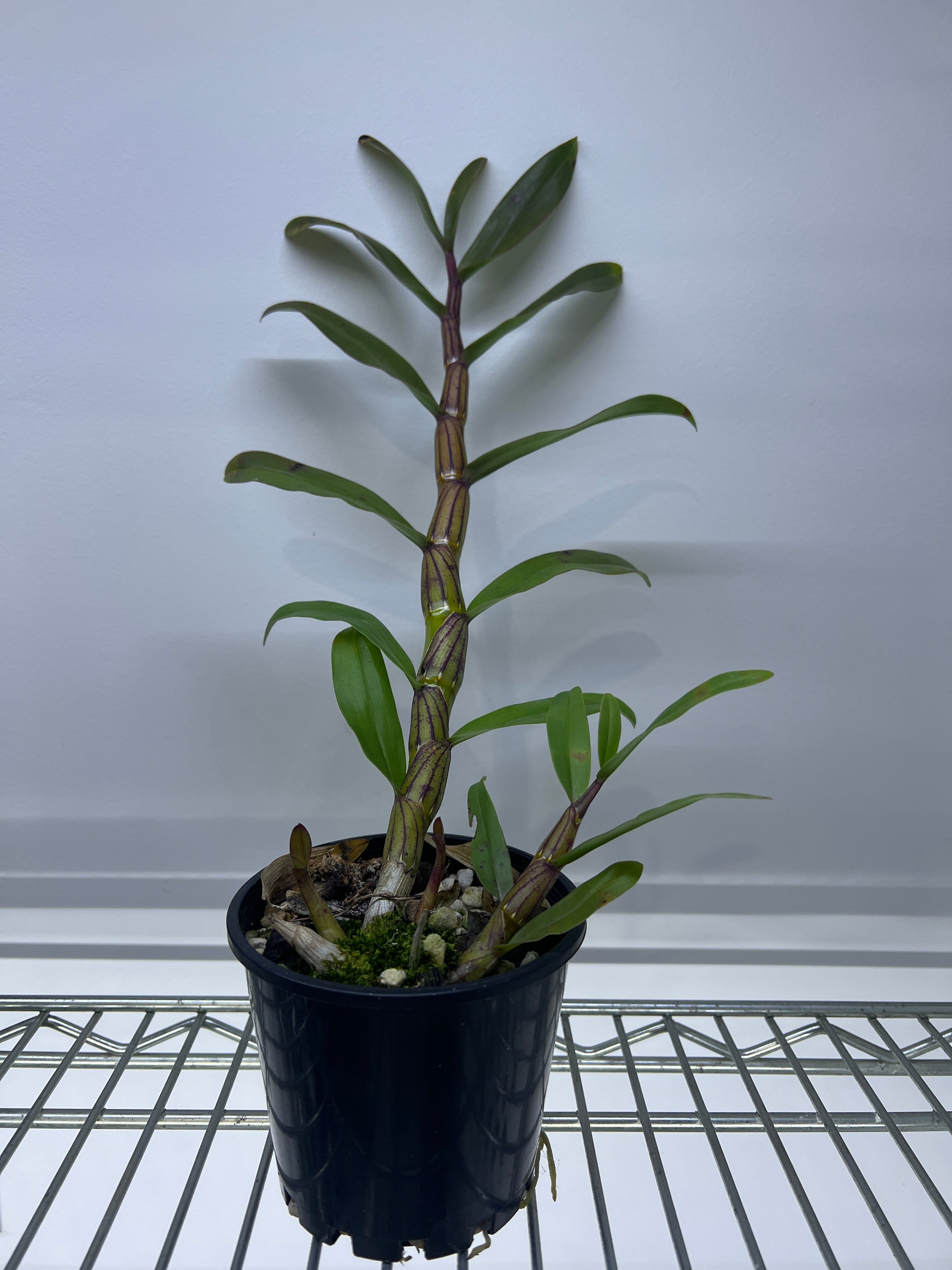 This is a stunning Dendrobium species from Tropical Mainland Asia growing in a 70mm pot. It is an amusing orchid plant which will have charming and fragrant flowers once it blooms. It is suitable for all beginners and orchid lovers. This orchid can bloom with up to 15 flowers that are large, up to 13cm wide. It has canes that are evergreen.