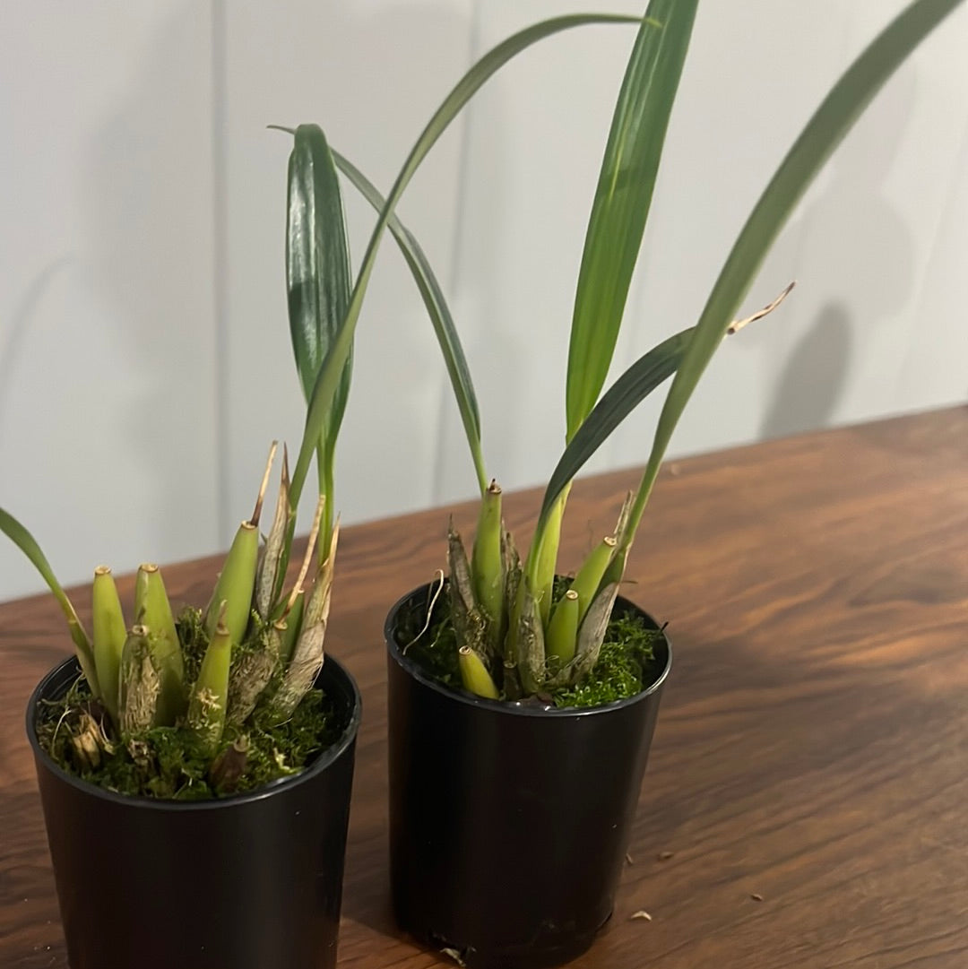 | Repotting | It is encouraged that you repot orchids only when the plant is outgrowing the pot. An orchid needs to be repotted when roots start growing outside of the pot vigorously and the pot swells or cracks. Only use a pot that is one size larger than the previous pot. Do not repot seedlings immediately upon receiving them as this can slow down growth and may cause transplant shock. When repotting, choose a pot with drainage holes so that water does not pool and cause root rot. |