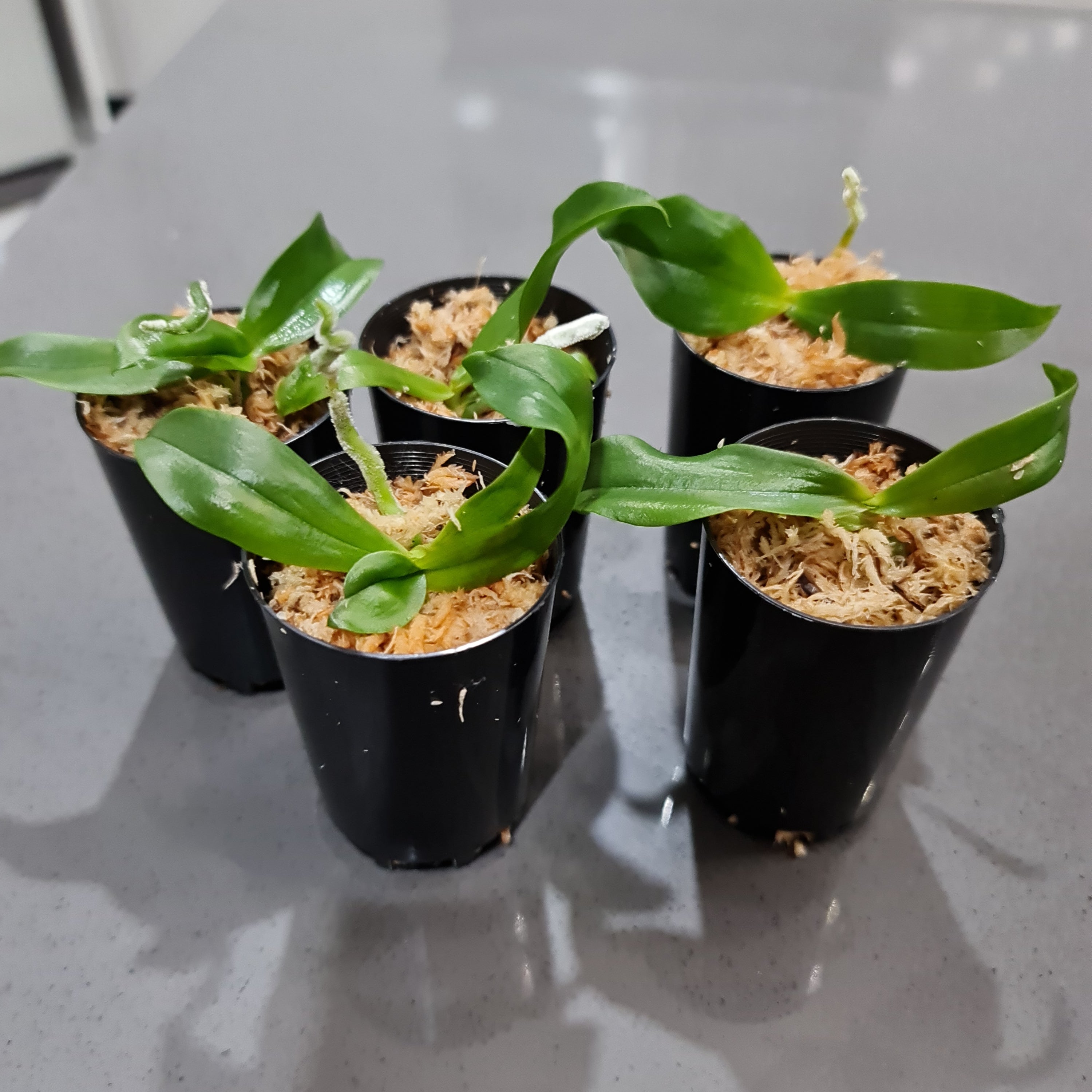 | Repotting | It is encouraged that you repot orchids only when the plant is outgrowing the pot. An orchid needs to be repotted when roots start growing outside of the pot vigorously and the pot swells or cracks. Only use a pot that is one size larger than the previous pot. Do not repot seedlings immediately upon receiving them as this can slow down growth and may cause transplant shock. When repotting, choose a pot with drainage holes so that water does not pool and cause root rot. |