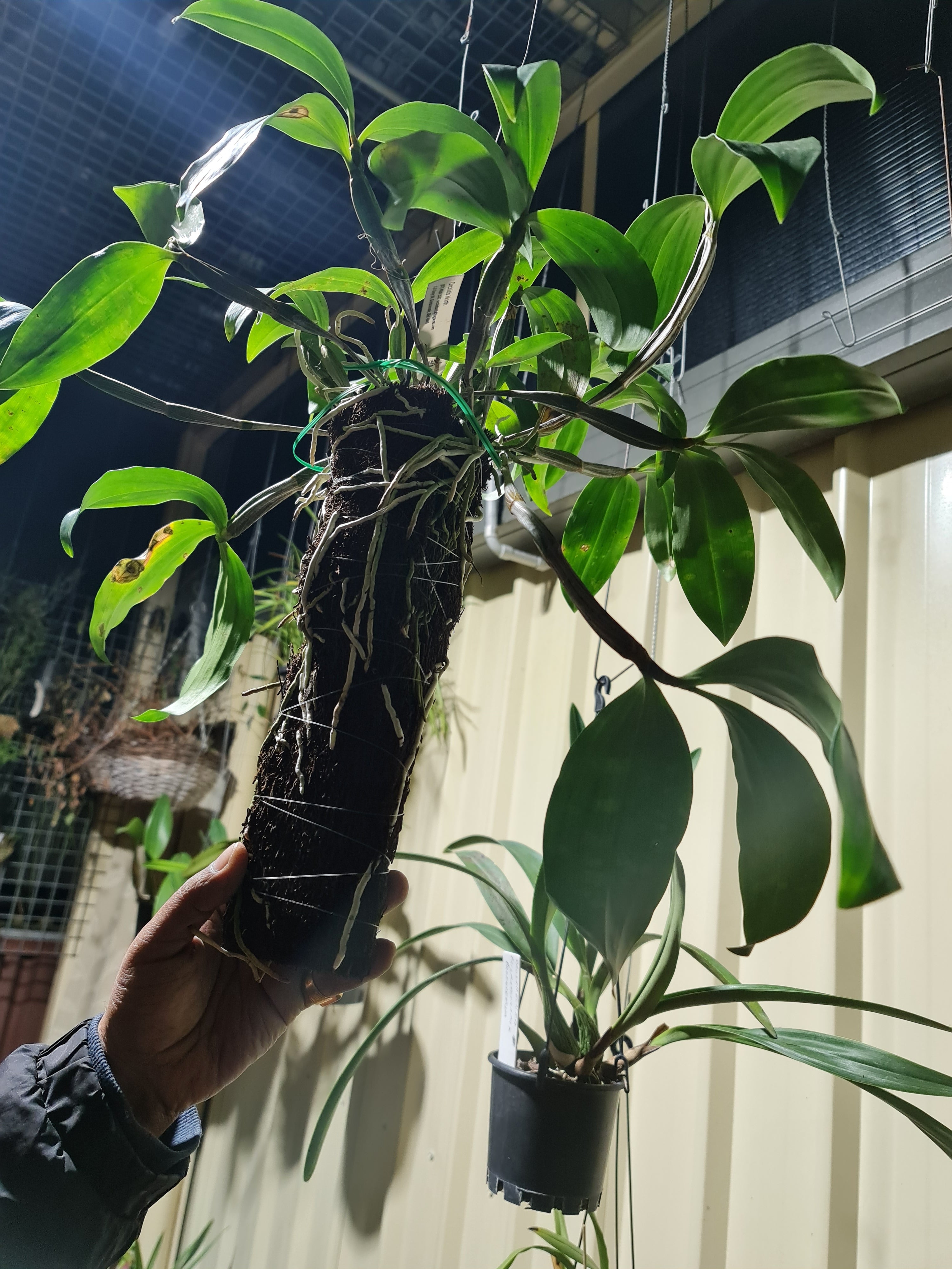 | Repotting | It is encouraged that you repot orchids only when the plant is outgrowing the pot. An orchid needs to be repotted when roots start growing outside of the pot vigorously and the pot swells or cracks. Only use a pot that is one size larger than the previous pot. Do not repot seedlings immediately upon receiving them as this can slow down growth and may cause transplant shock. When repotting, choose a pot with drainage holes so that water does not pool and cause root rot. |