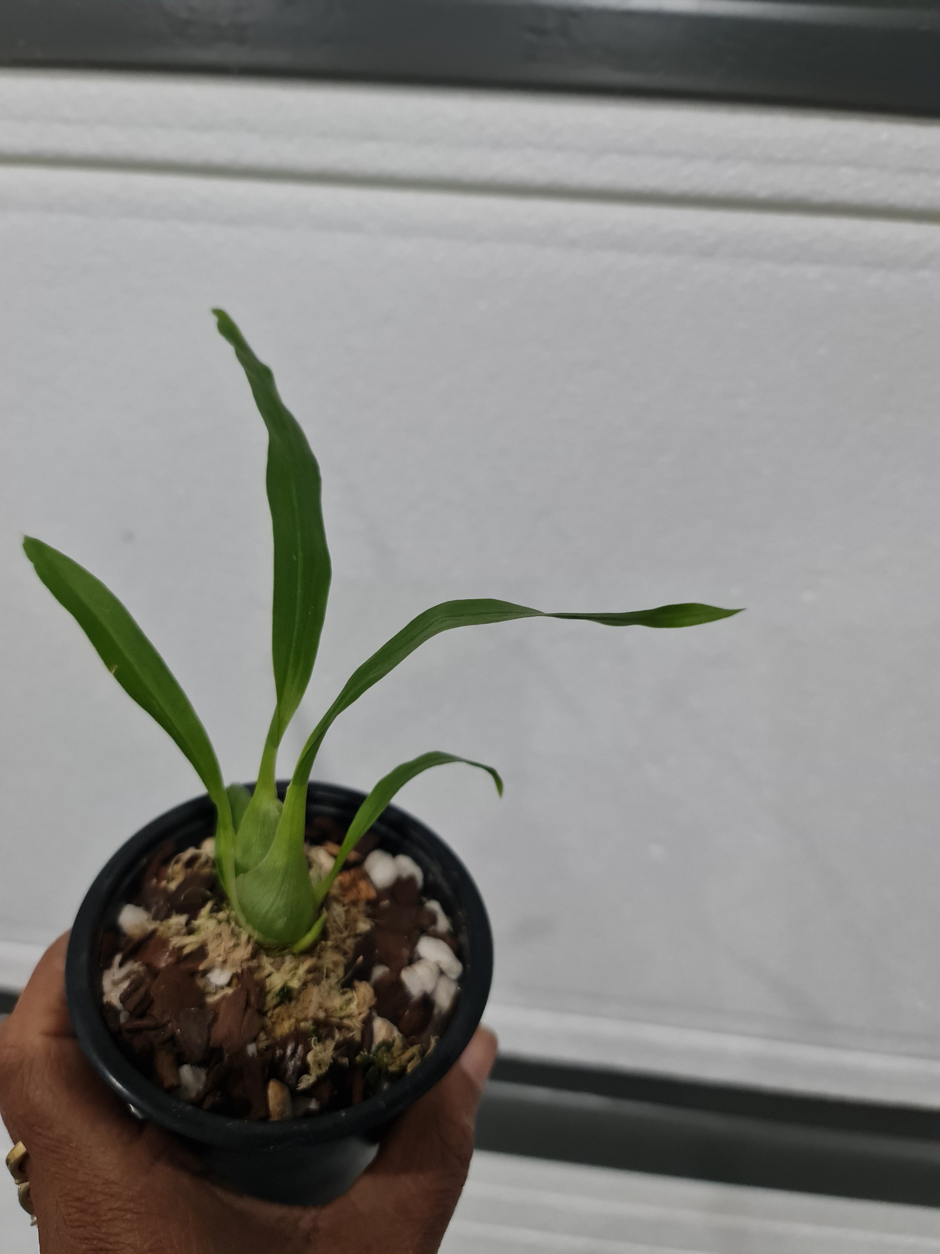 | Repotting | It is encouraged that you repot orchids only when the plant is outgrowing the pot. An orchid needs to be repotted when roots start growing outside of the pot vigorously and the pot swells or cracks. Only use a pot that is one size larger than the previous pot. Do not repot seedlings immediately upon receiving them as this can slow down growth and may cause transplant shock. When repotting, choose a pot with drainage holes so that water does not pool and cause root rot. |