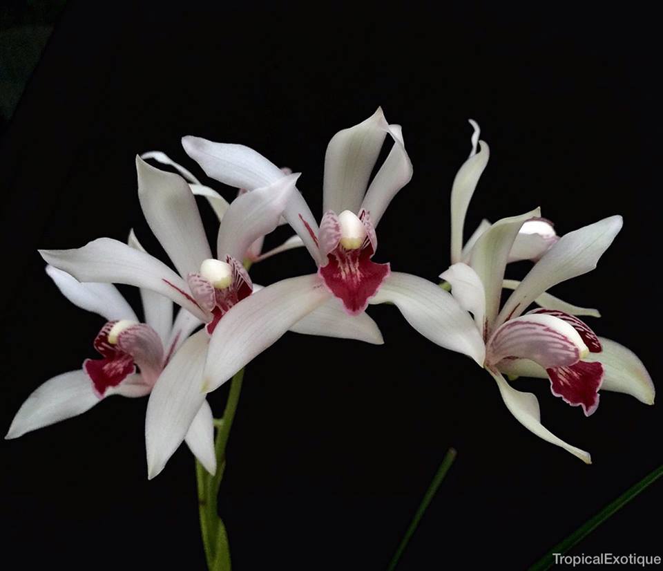 Found in Thailand, Vietnam and Hainan China in highland primary cloud forests in shallow, sandy soils among sandstone rocks often in the shade of low bushes at elevations of 1000 to 2600 meters as a large to giant sized, cool to cold growing terrestrial with ovoid, lightly bilaterally flattened pseudobulbs carrying 6 to 10, narrowly linear-elliptic, tapering to an acute apex leaves articulated to a broadly sheathing base, 2 to 6" [5 to 15 cm] from the pseudobulb that blooms in the fall through spring on a sheathed, erect, 3'4" to 4'8" [100 to 150 cm] tall, loosely several to many [to 27] flowered inflorescence and carrying, non-fragrant, close set flowers.