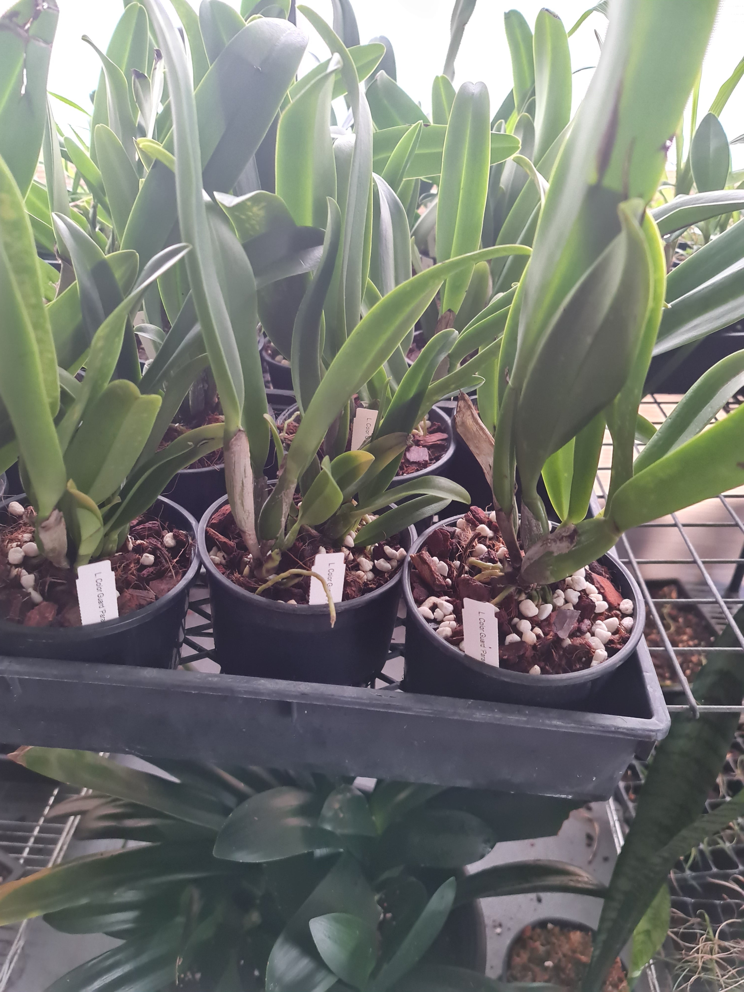 | Repotting | It is encouraged that you repot orchids only when the plant is outgrowing the pot. An orchid needs to be repotted when roots start growing outside of the pot vigorously and the pot swells or cracks. Only use a pot that is one size larger than the previous pot. Do not repot seedlings immediately upon receiving them as this can slow down growth and may cause transplant shock. When repotting, choose a pot with drainage holes so that water does not pool and cause root rot. |