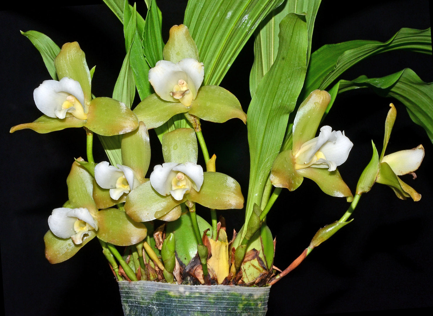 The Luminous Lycaste [refers to the bright yellow and green flowers. Flower Size 2.4" [6 cm]. Found in Costa Rica and Colombia, as a medium sized, warm to cool growing epiphyte with pseudobulbs with long spines after leaf fall and carrying, plicate, ribbed, elliptic leaves that blooms in the late spring and early summer on to 18, erect, 3.8" [9.5 cm] long, single flowered inflorescence with fragrant flowers.