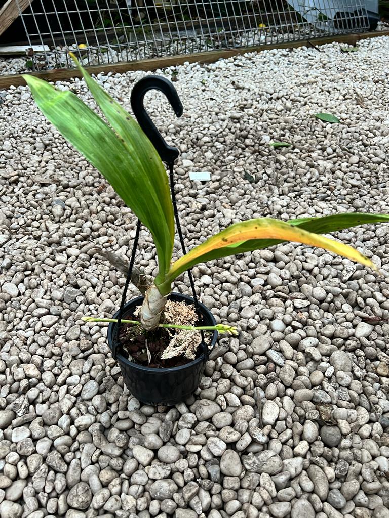 One of the blackest orchids to date! Grow with plenty of heat, water and fertilizer during the spring and summer months. After or during the flowering season it is common for these plants to drop all of their leaves. Cut back water and fertilizer once the flowers have finished, then resume a normal watering schedule when new growth starts. This orchids is in spike at the moment and ready to flower. When we ship the plants in spike, there is a chance that the spike may be damaged by courier process.