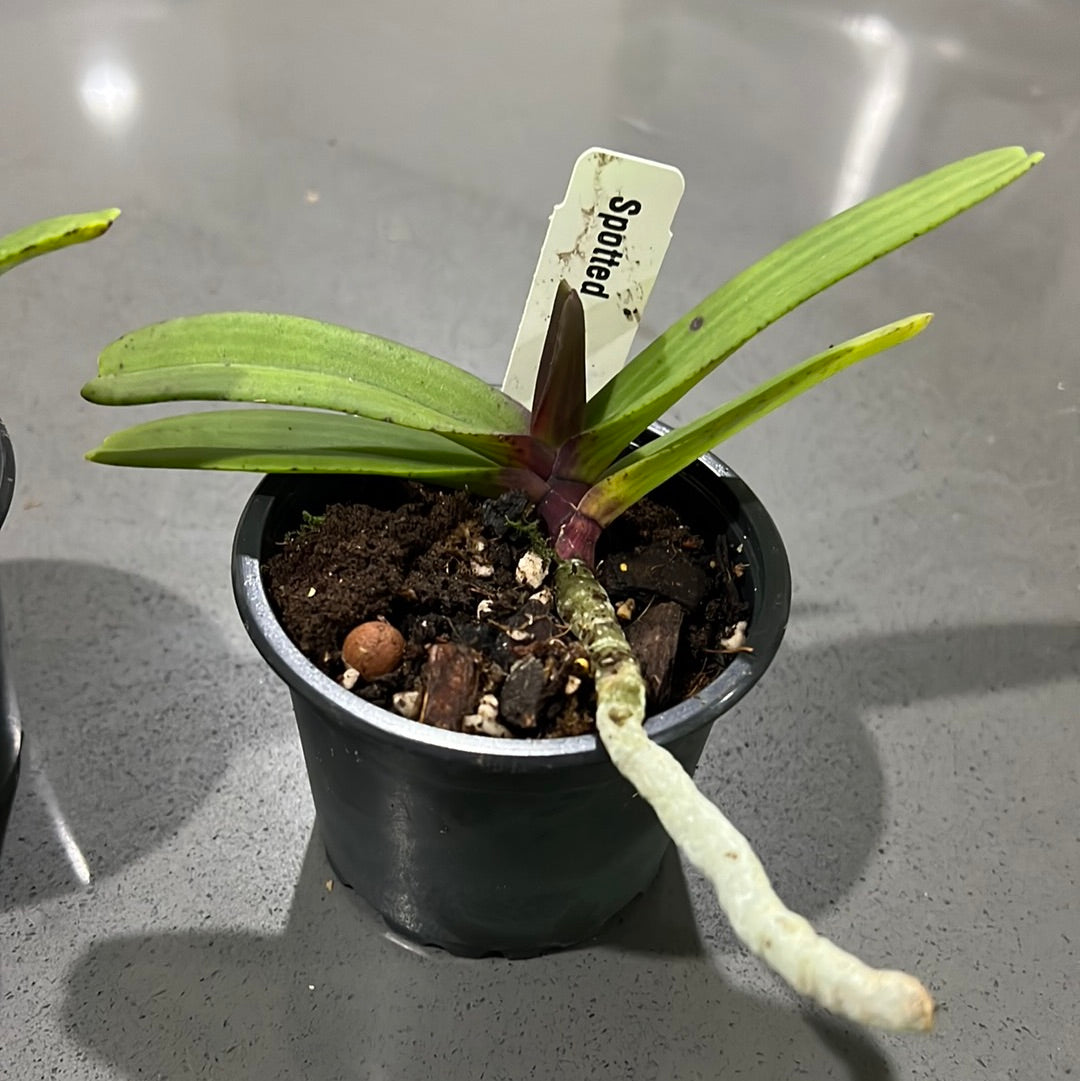 | Repotting | It is encouraged that you repot orchids only when the plant is outgrowing the pot. An orchid needs to be repotted when roots start growing outside of the pot vigorously and the pot swells or cracks. Only use a pot that is one size larger than the previous pot. Do not repot seedlings immediately upon receiving them as this can slow down growth and may cause transplant shock. When repotting, choose a pot with drainage holes so that water does not pool and cause root rot. |