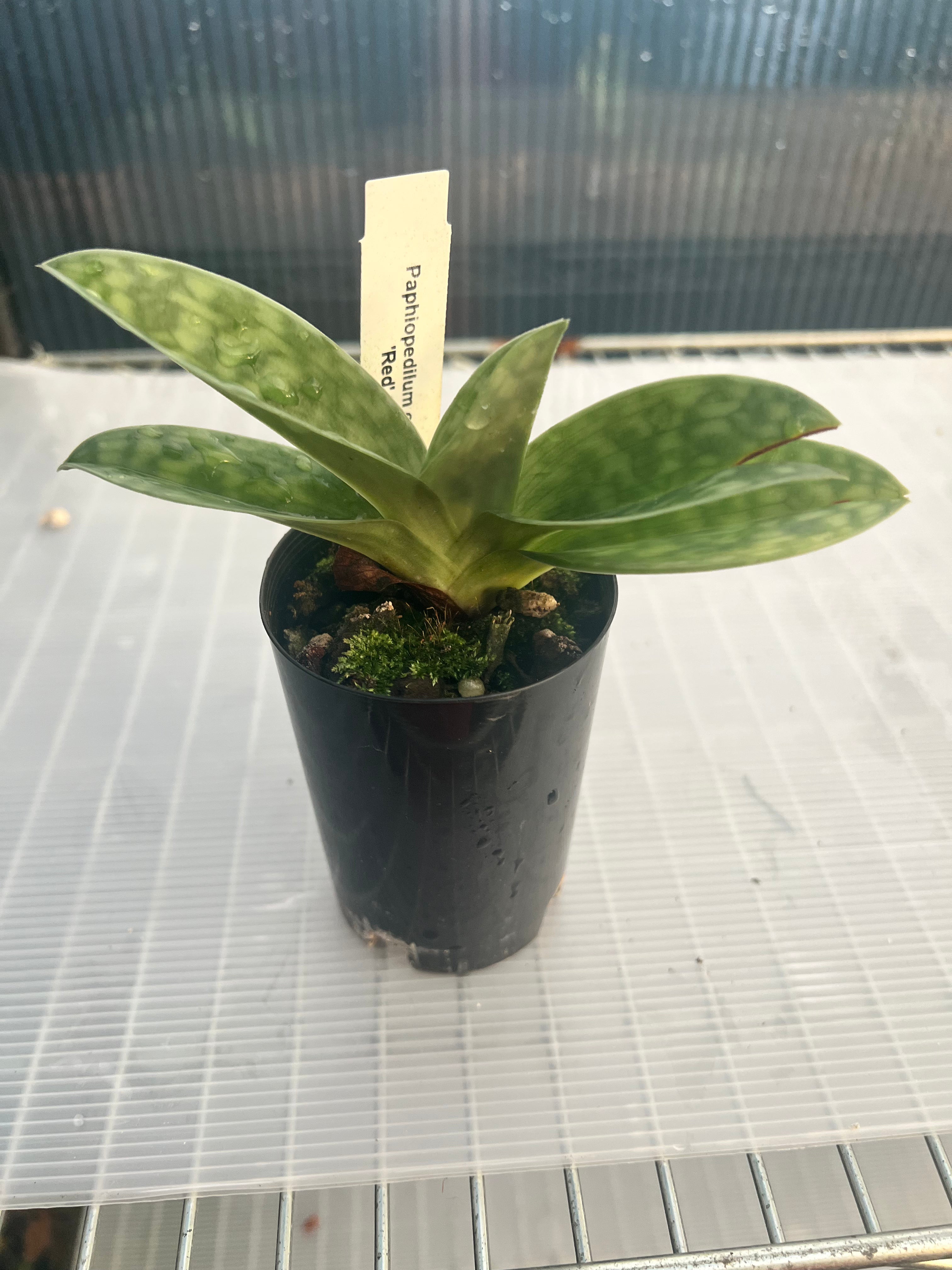 Paphiopedilum callosum is native to Vietnam, Thailand, Laos, Malaysia and Cambodia. flowers are lovely dark wine coloured. Easy to grow species. Paphiopedilum orchids are also called a lady's slipper orchid as the lip of the flower resembles a lady's shoe. Easy to grow and can flower twice per year. Paphiopedilum flower on each new growth once matures, with the older growths remaining on the plant to provide energy for the new plants. Older growths will eventually die off as new growths continue to emerge.