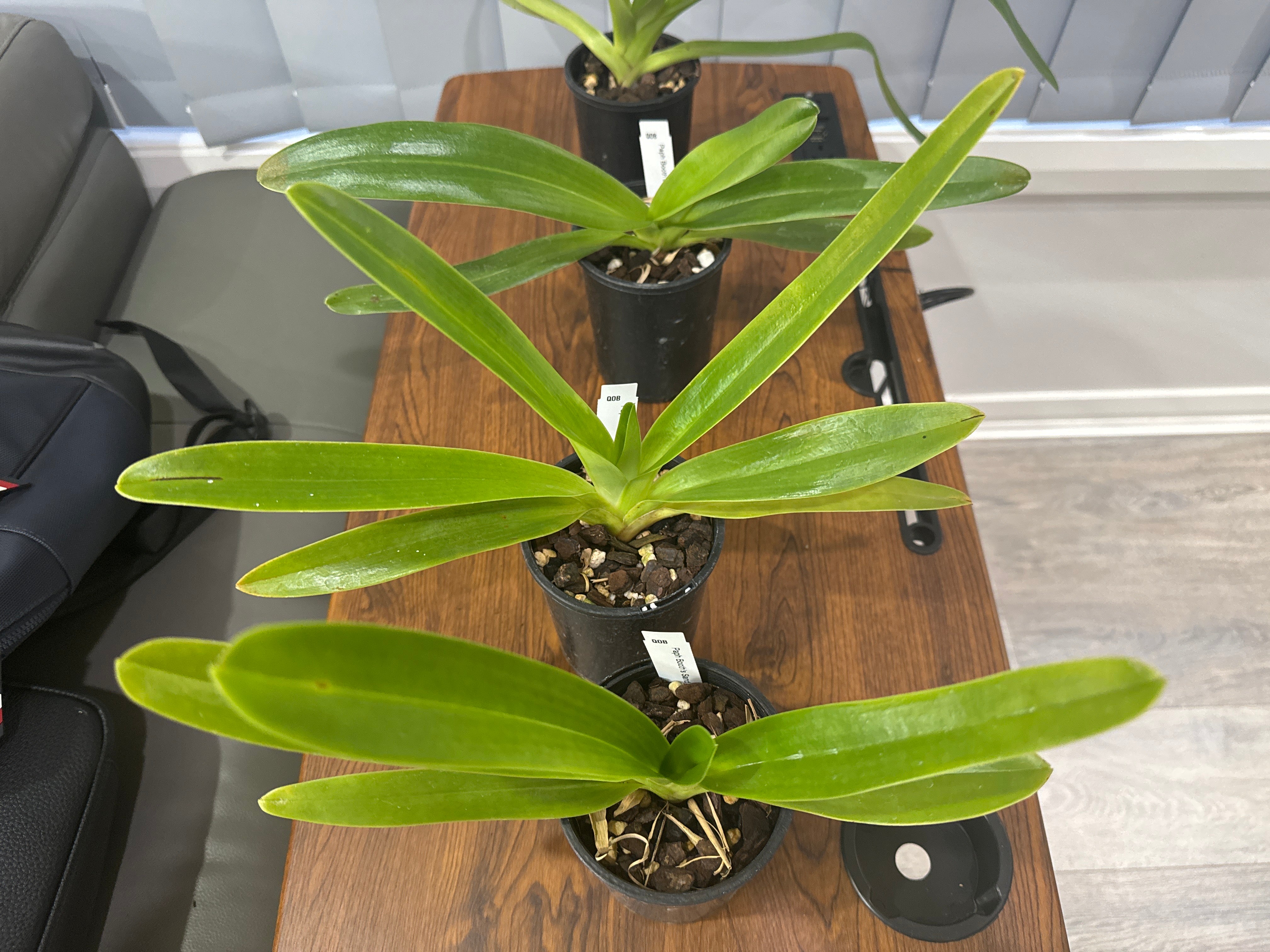 | Repotting | It is encouraged that you repot orchids only when the plant is outgrowing the pot. An orchid needs to be repotted when roots start growing outside of the pot vigorously and the pot swells or cracks. Only use a pot that is one size larger than the previous pot. Do not repot seedlings immediately upon receiving them as this can slow down growth and may cause transplant shock. When repotting, choose a pot with drainage holes so that water does not pool and cause root rot. |