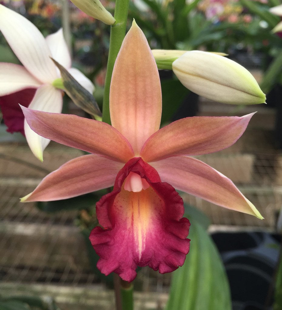 This orchid is doubly unique in that it’s a shade-lover, and that its terrestrial in its native habitat! Phaius Lady Ramona Harris ‘Here’s Looking at You’ is well adapted to orchid potting media, but if you live in a region with no freeze, it does wonderfully well in a perennial garden! Large flowers come in on tall, 2-3′ spikes. The back of Phaius flowers are white, contrasting with the front, where the show really happens. Flowers are exceptionally long lived.