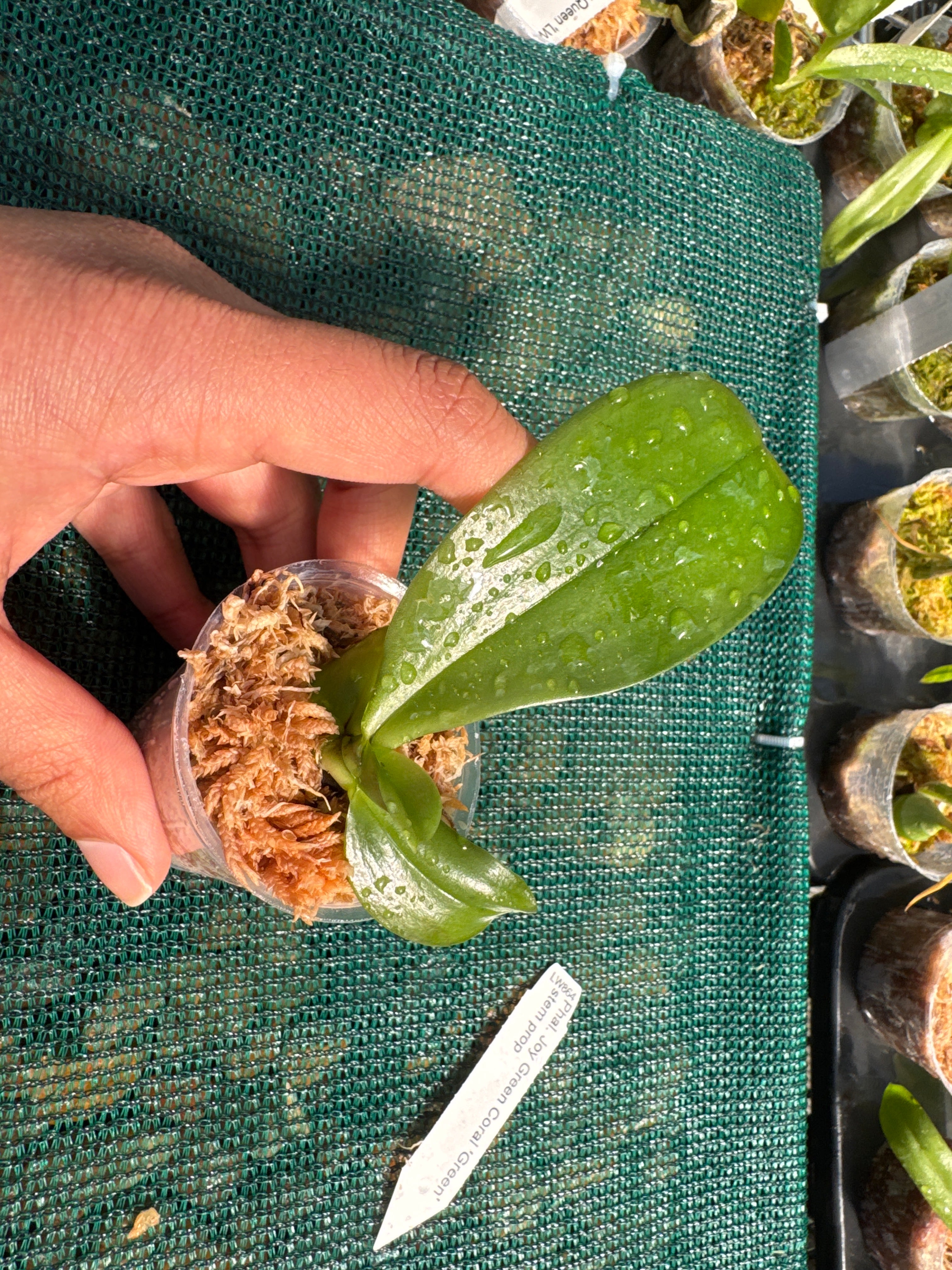 | Repotting | It is encouraged that you repot orchids only when the plant is outgrowing the pot. An orchid needs to be repotted when roots start growing outside of the pot vigorously and the pot swells or cracks. Only use a pot that is one size larger than the previous pot. Do not repot seedlings immediately upon receiving them as this can slow down growth and may cause transplant shock. When repotting, choose a pot with drainage holes so that water does not pool and cause root rot. |