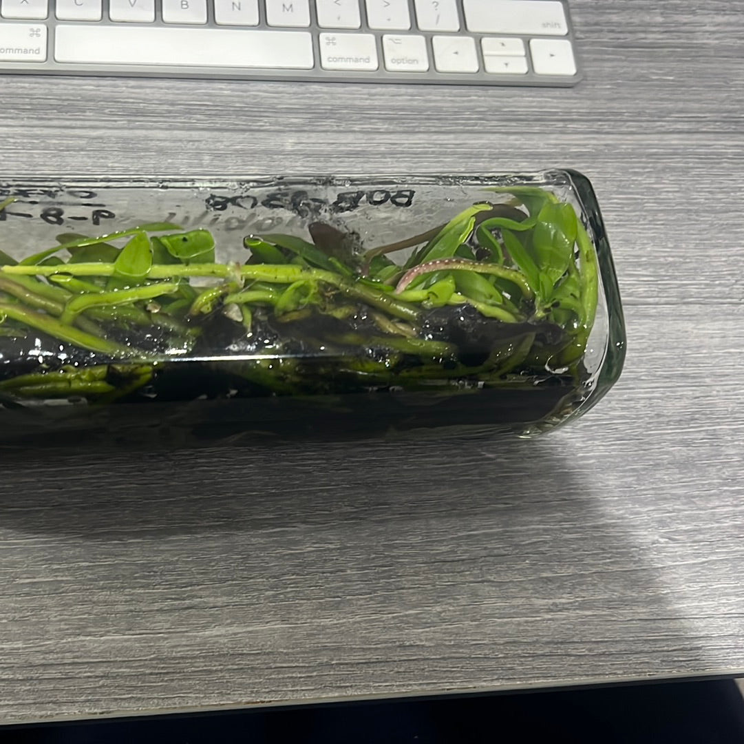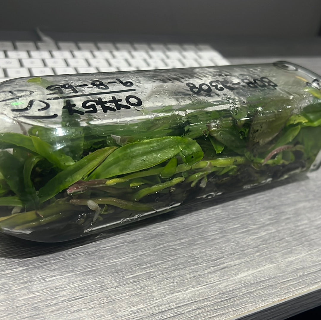Glass whiskey bottle flask containing approx. 30+ plantlets.