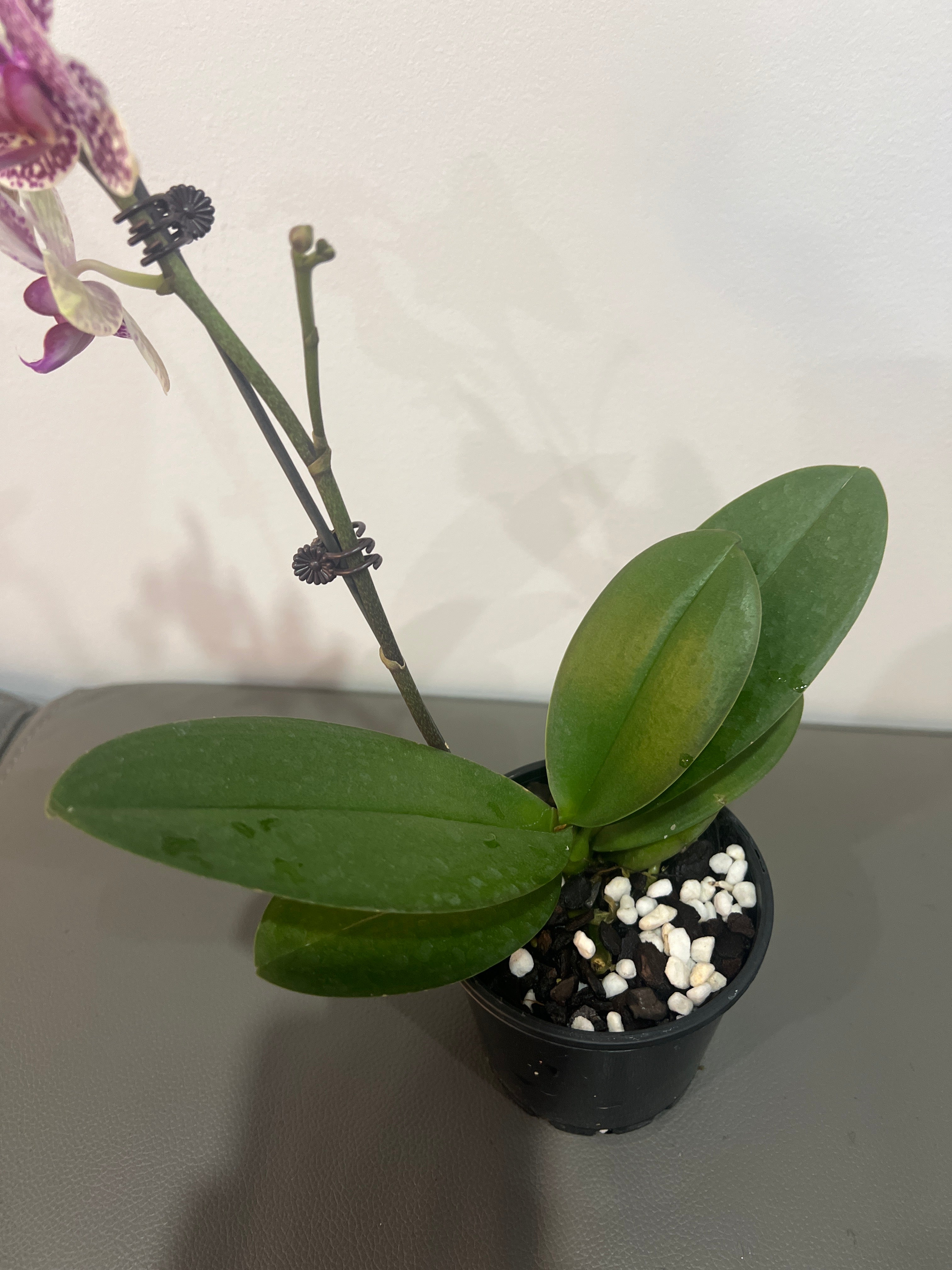 | Repotting | It is encouraged that you repot orchids only when the plant is outgrowing the pot. An orchid needs to be repotted when roots start growing outside of the pot vigorously and the pot swells or cracks. Only use a pot that is one size larger than the previous pot. Do not repot seedlings immediately upon receiving them as this can slow down growth and may cause transplant shock. When repotting, choose a pot with drainage holes so that water does not pool and cause root rot. |