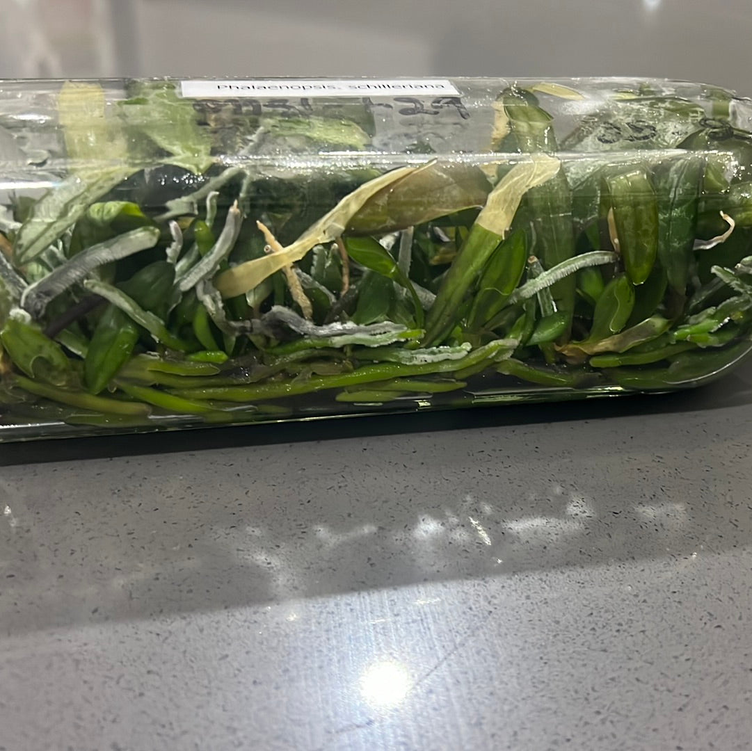 | Repotting | It is encouraged that you repot orchids only when the plant is outgrowing the pot. An orchid needs to be repotted when roots start growing outside of the pot vigorously and the pot swells or cracks. Only use a pot that is one size larger than the previous pot. Do not repot seedlings immediately upon receiving them as this can slow down growth and may cause transplant shock. When repotting, choose a pot with drainage holes so that water does not pool and cause root rot. |