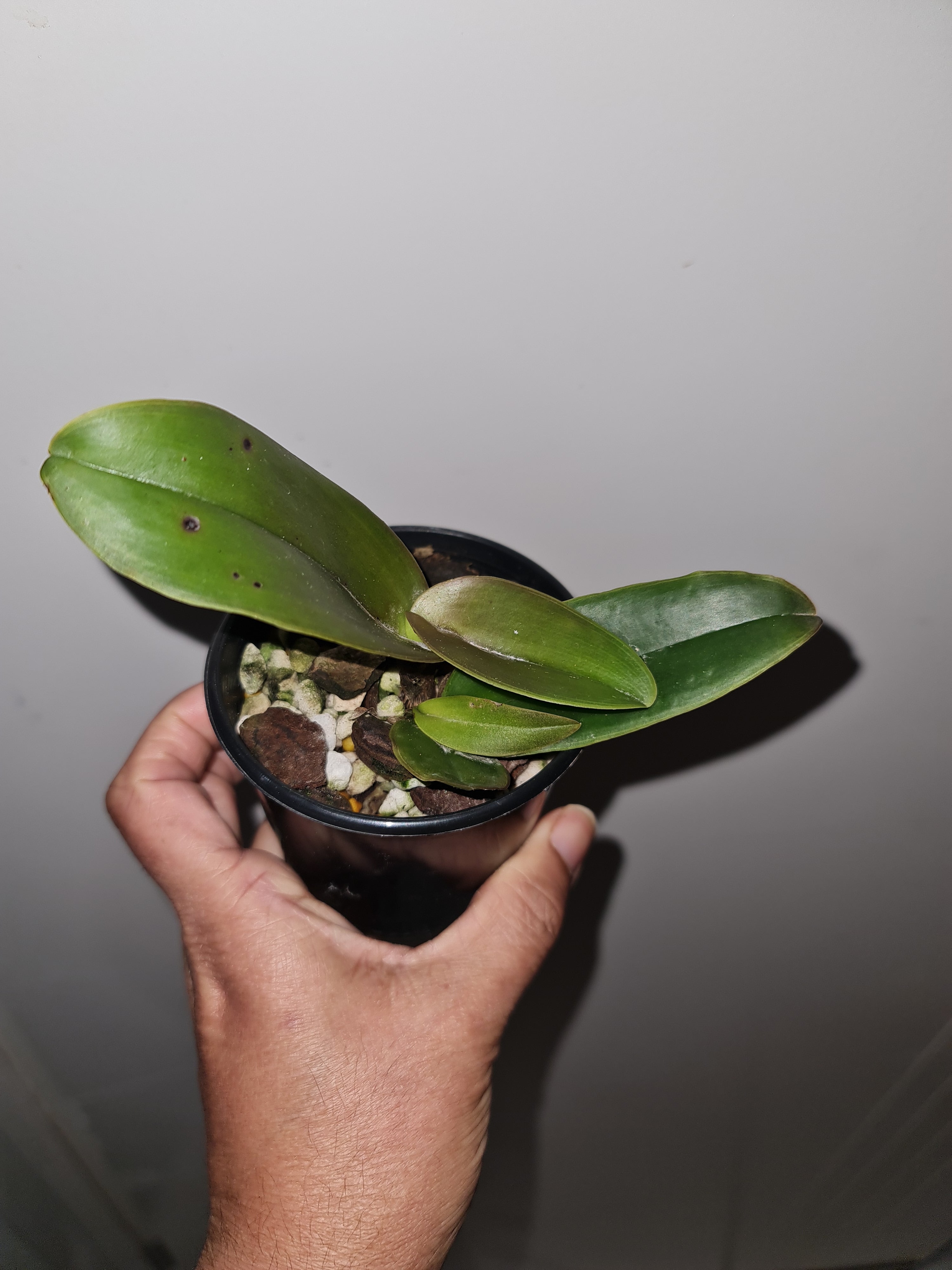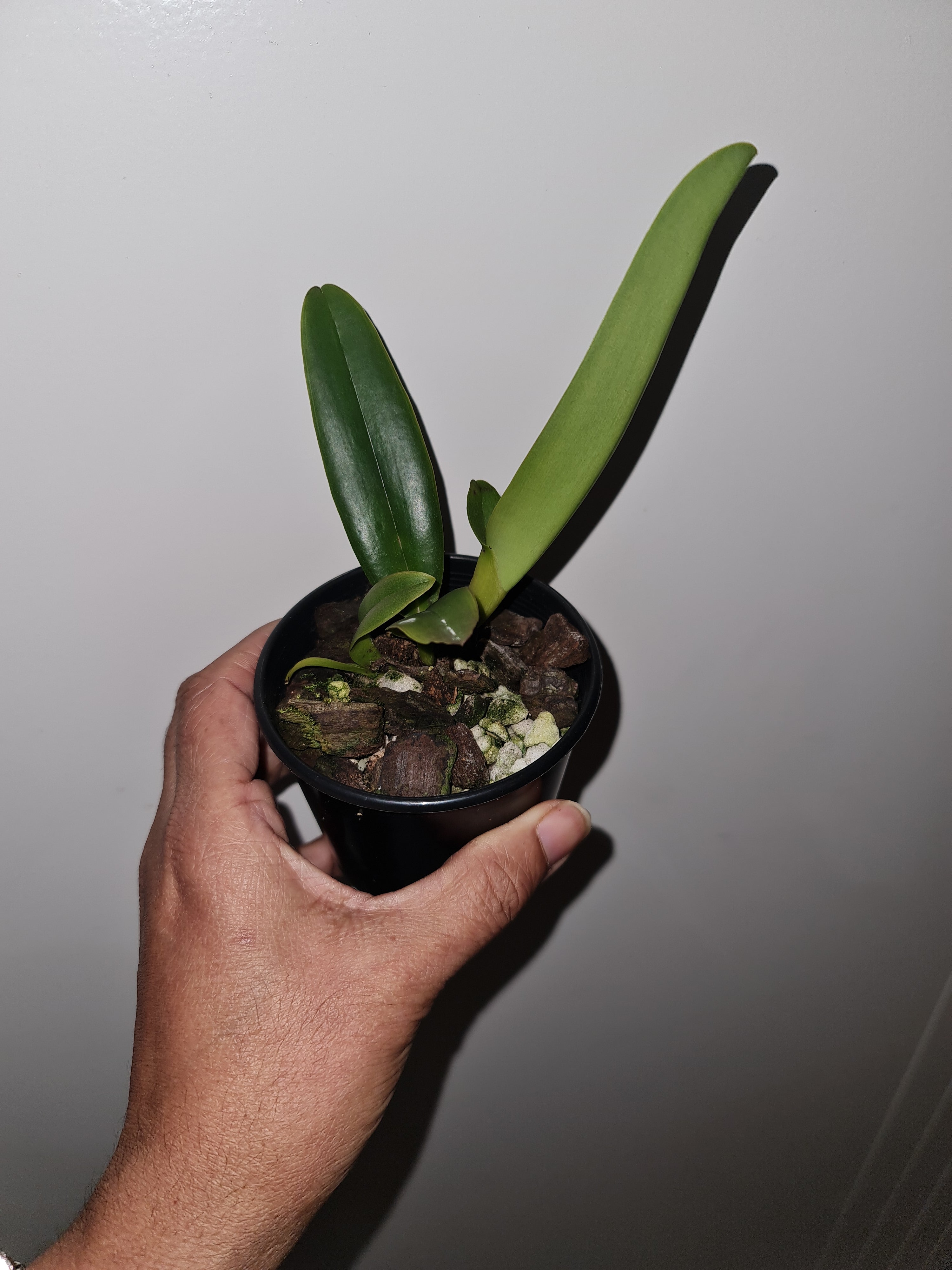 | Repotting | It is encouraged that you repot orchids only when the plant is outgrowing the pot. An orchid needs to be repotted when roots start growing outside of the pot vigorously and the pot swells or cracks. Only use a pot that is one size larger than the previous pot. Do not repot seedlings immediately upon receiving them as this can slow down growth and may cause transplant shock. When repotting, choose a pot with drainage holes so that water does not pool and cause root rot. |