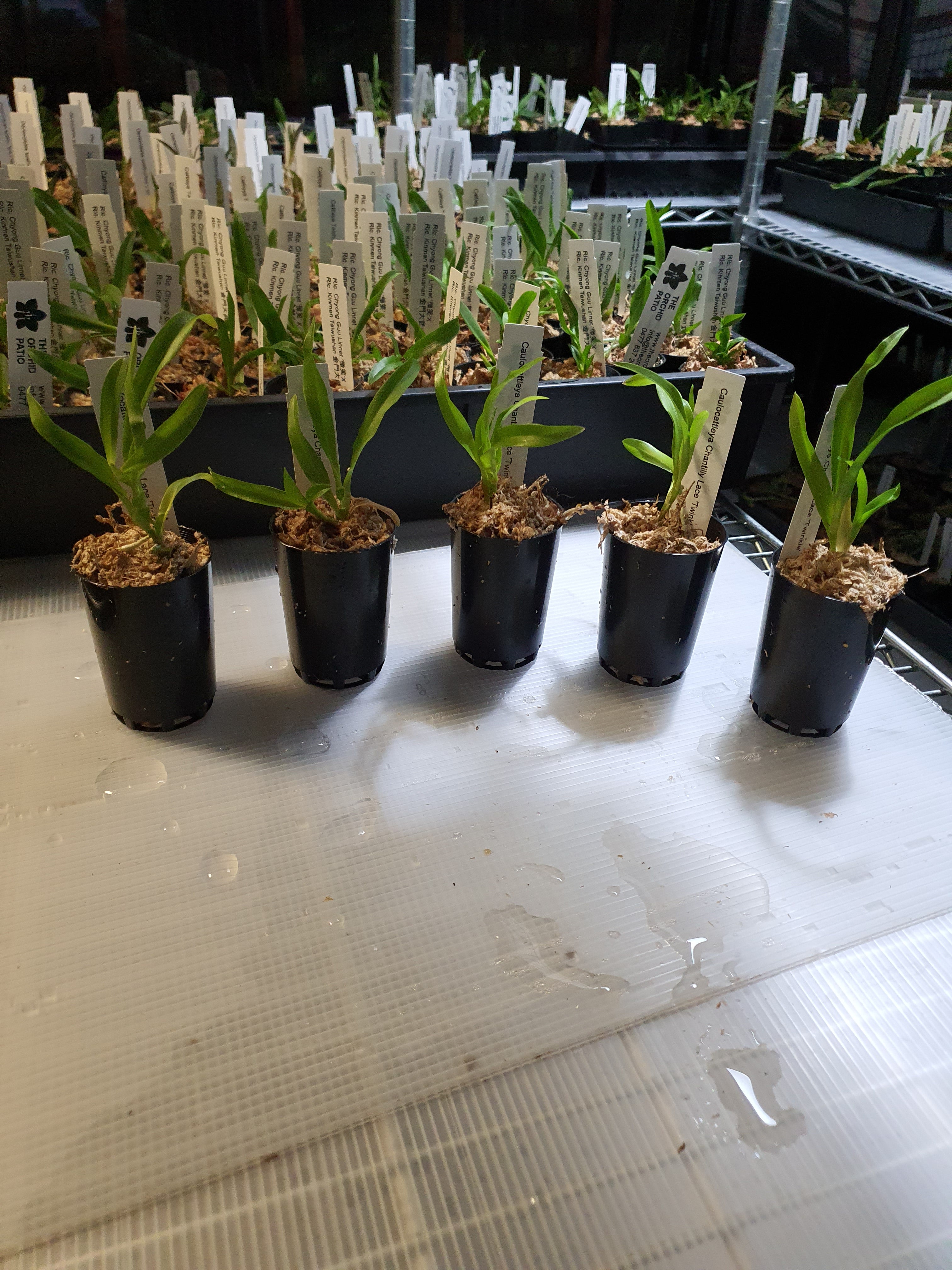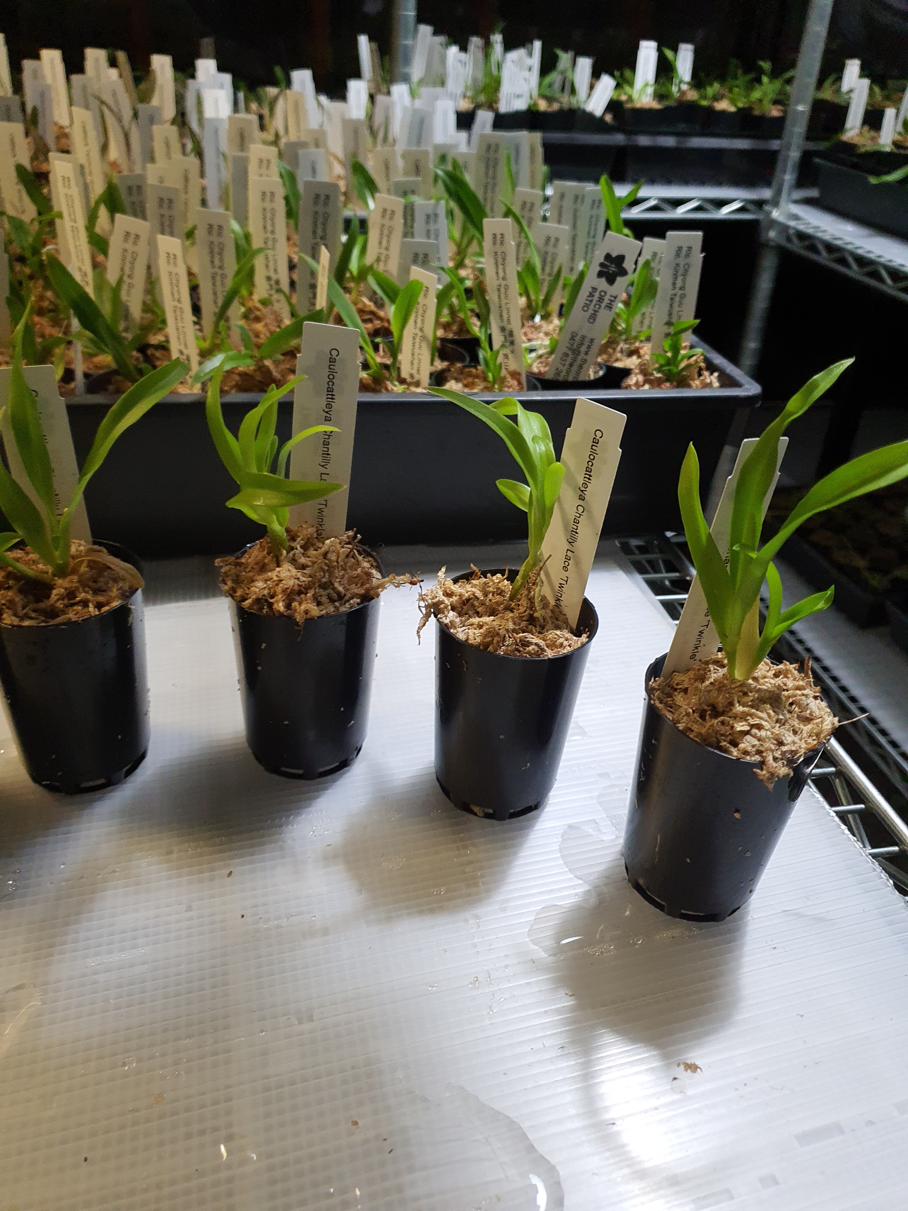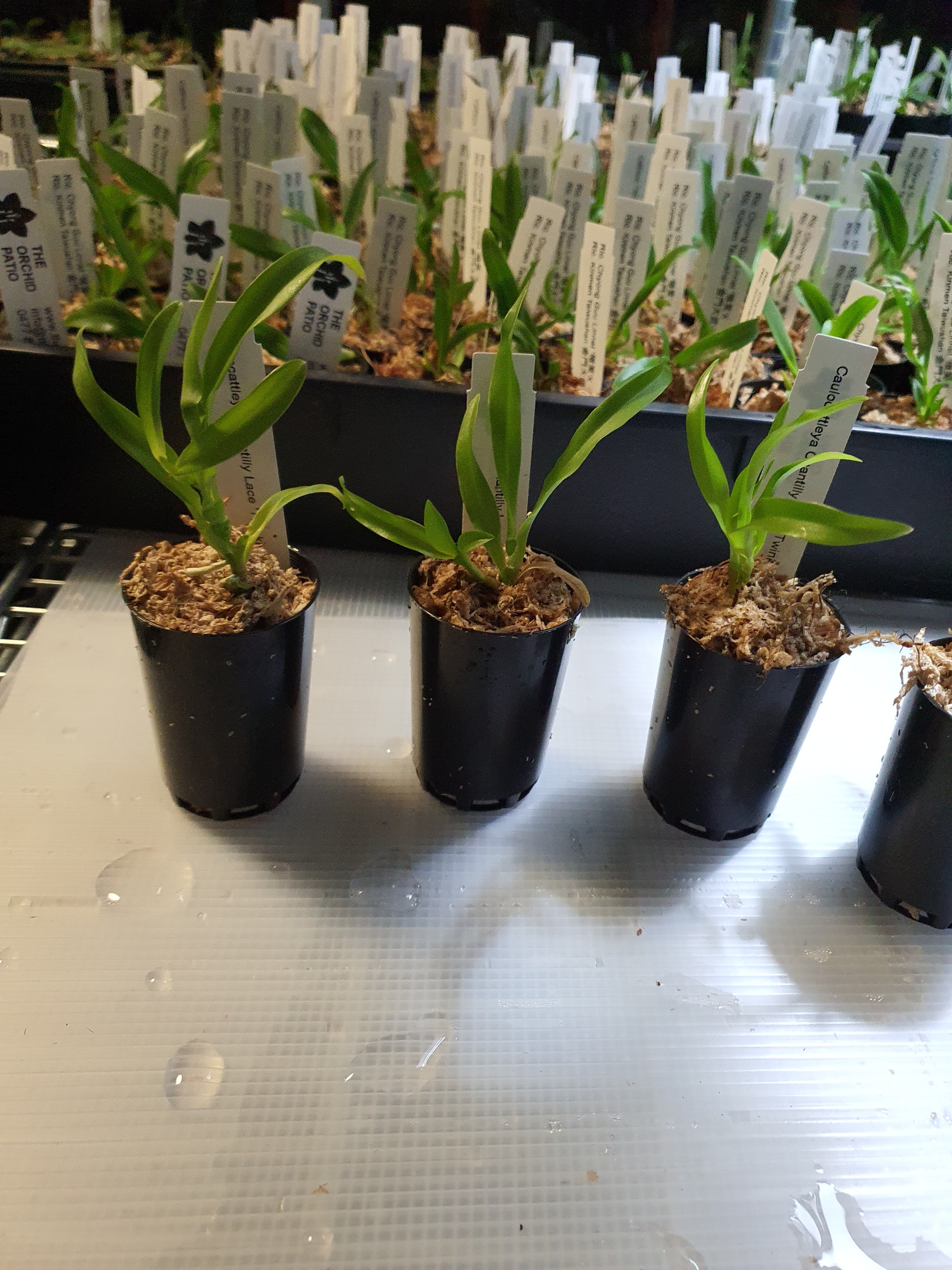 | Repotting | It is encouraged that you repot orchids only when the plant is outgrowing the pot. An orchid needs to be repotted when roots start growing outside of the pot vigorously and the pot swells or cracks. Only use a pot that is one size larger than the previous pot. Do not repot seedlings immediately upon receiving them as this can slow down growth and may cause transplant shock. When repotting, choose a pot with drainage holes so that water does not pool and cause root rot. |